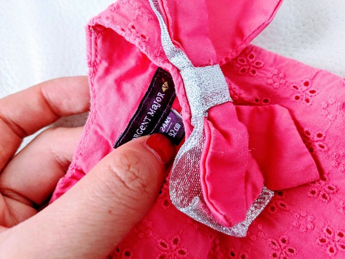 Magnifique robe broderie anglaise Sergent major 2 ans 86 cm Couleur rose fushia Noeud papillon rose fushia et doré Broderie étoile dorée sur la jupe Boutons pailletés Très mignonne porté Très bon état, peu portée #yipin_bebe_24mois #yipin_bebe_24mois_fille