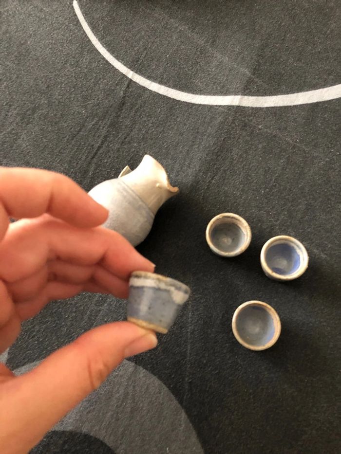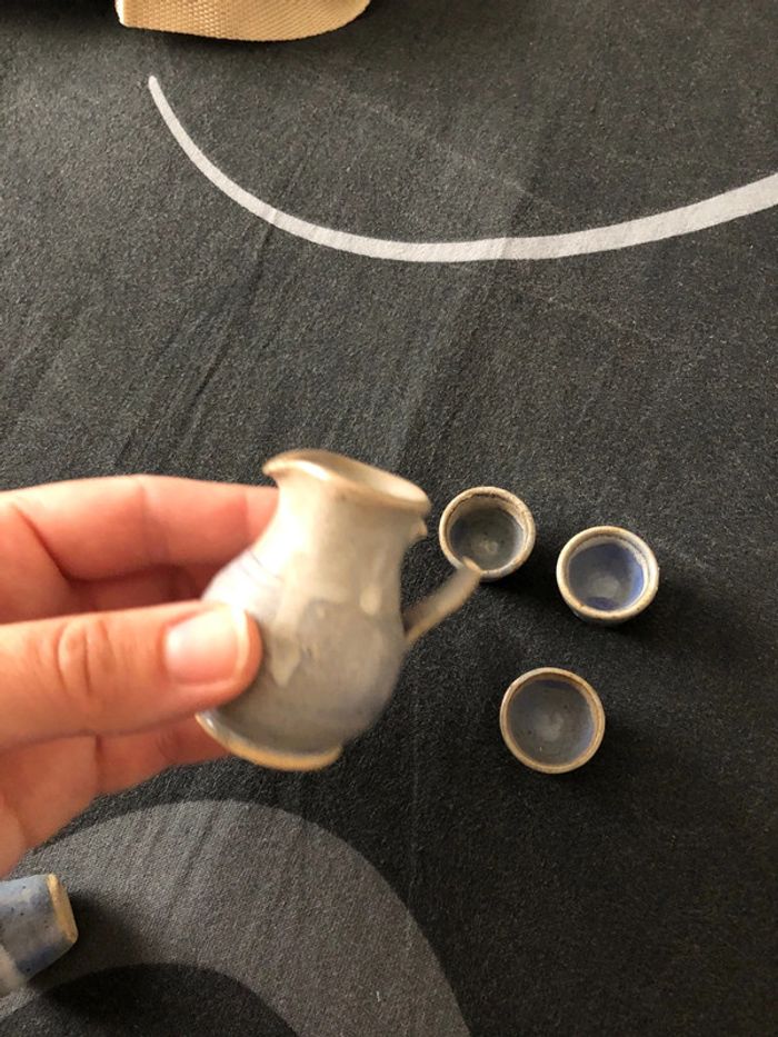 Carafe et petits bol decoratif Attention La carafe à la poignée cassée