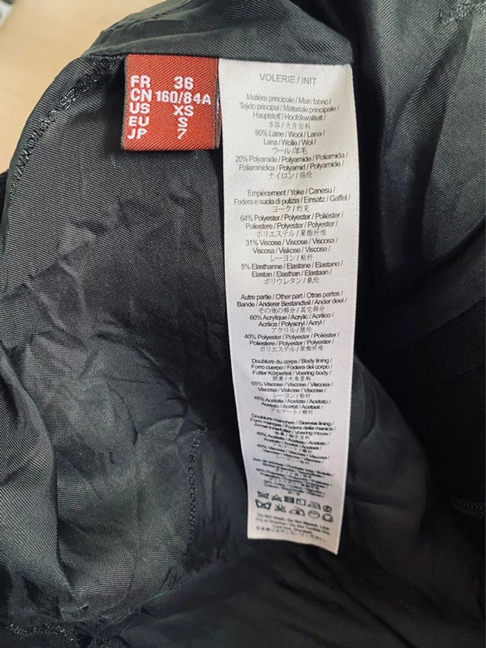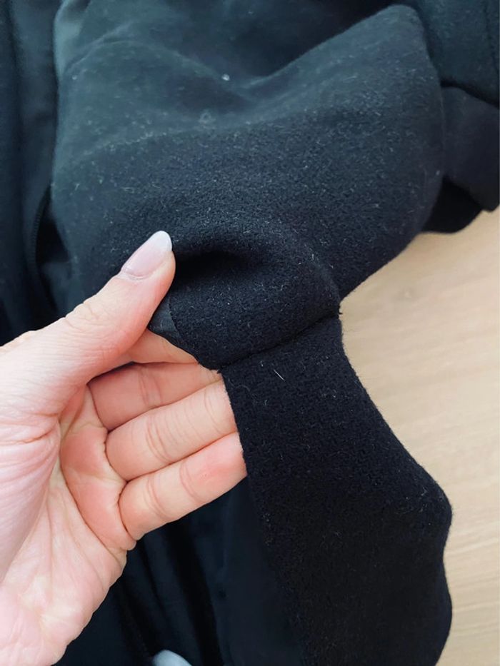 Taille 36 Tient bien chaud, 80% de laine Fermeture éclair Légère déchirure de la doublure intérieure, invisible à l’extérieur