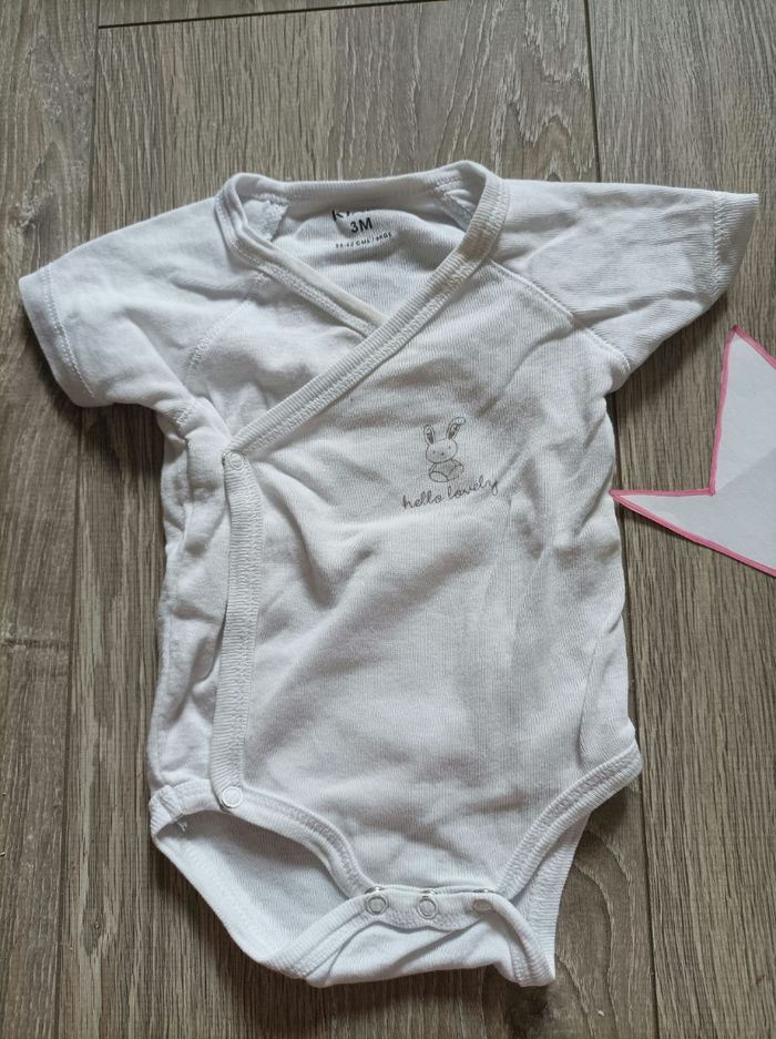 Body manches courtes 3 mois Mixte blanc Kiabi Ouverture devant pour faciliter l habillage de bébé Col un peu jauni