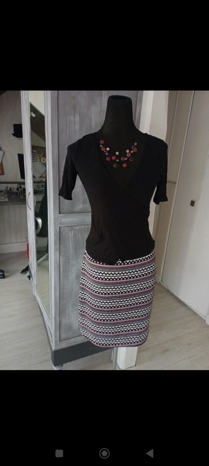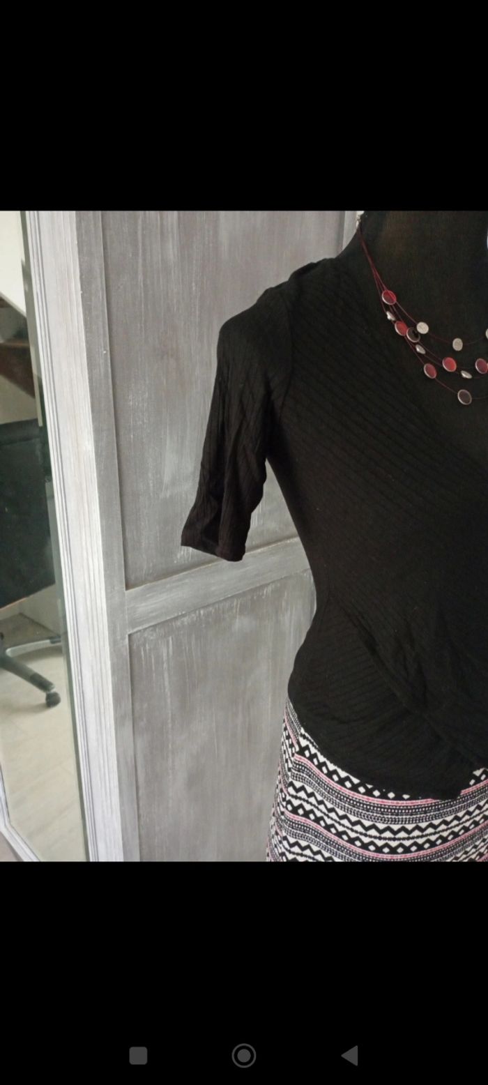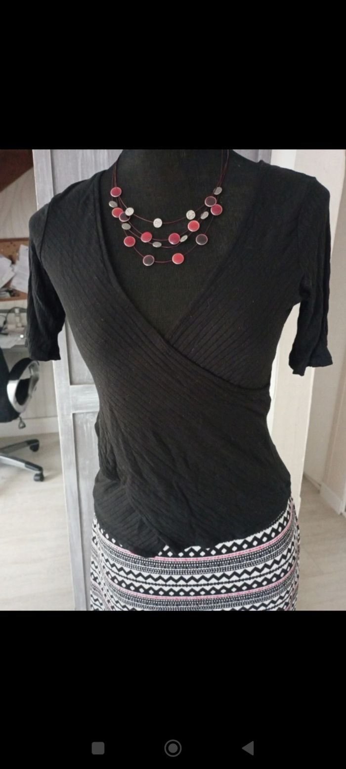 Tee-shirt noir effet cache coeur. Matière souple et élastique pour épouser les formes Très agréable à porter