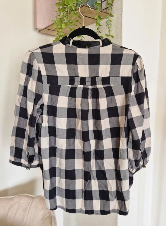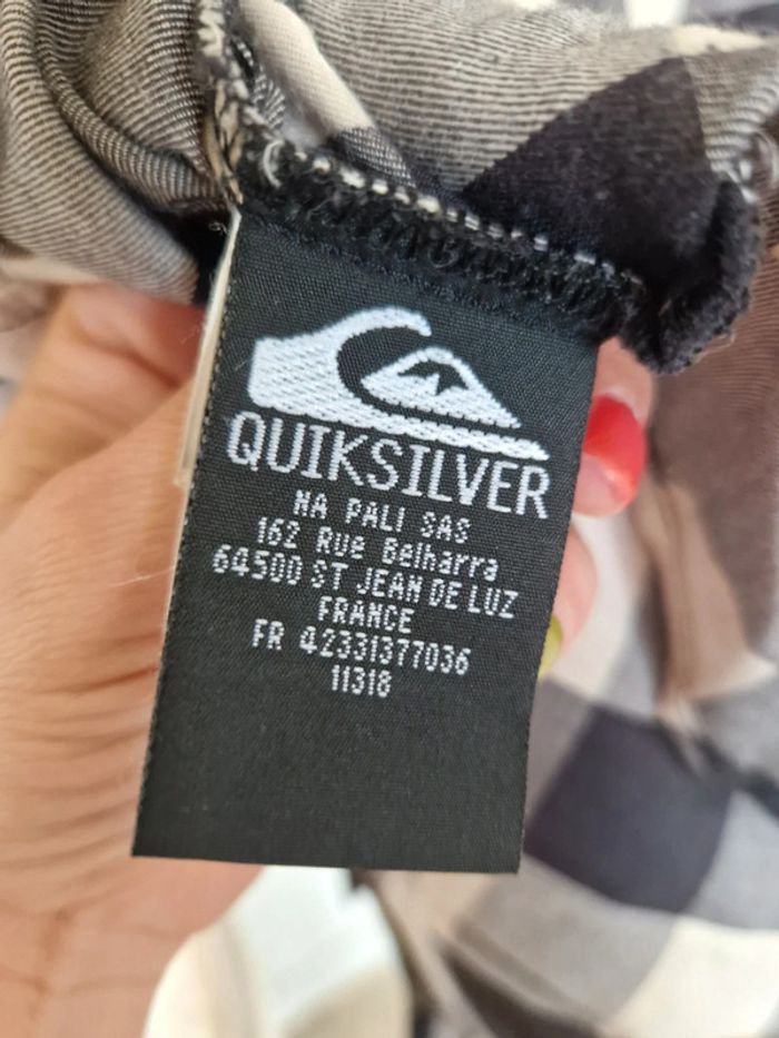 Chemise à carreaux beige noir et gris manches 3/4 . Le nœuds du col peut se retirer. Quiksilver Taille L #femme40 #femme40ceciled2021 #quiksilver