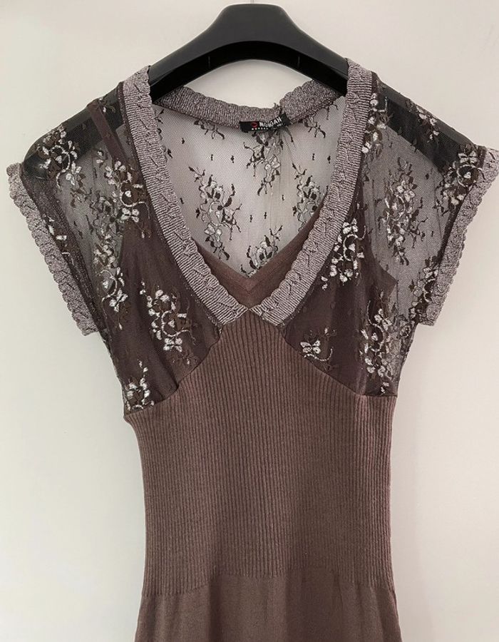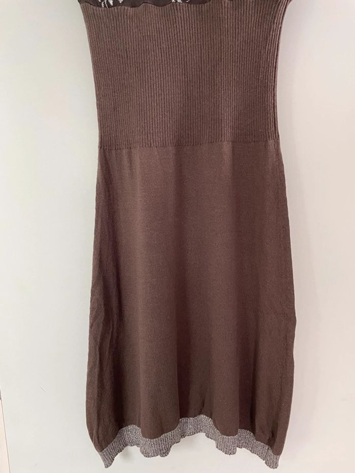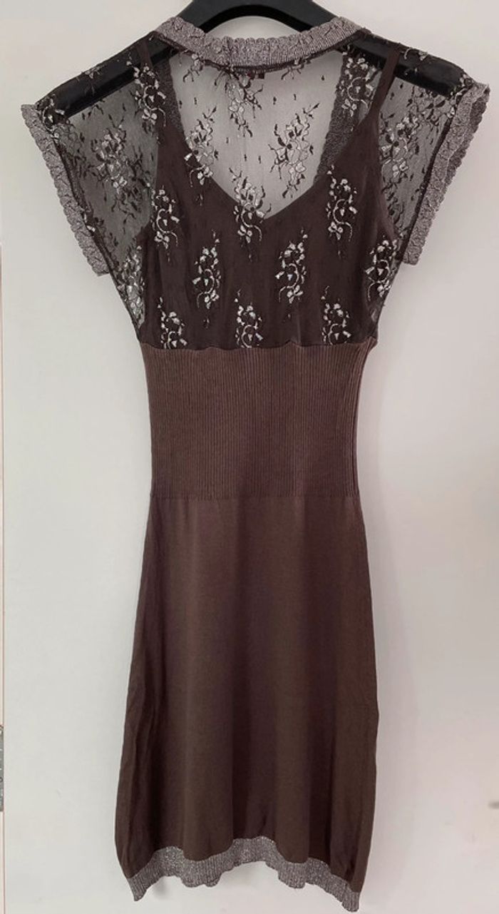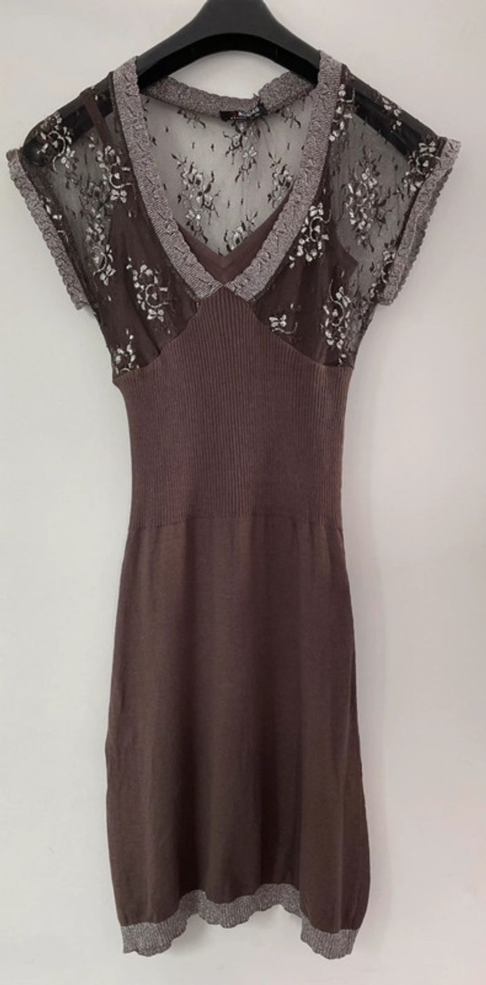 Robe mi-longue de marque Morgan en dentelle. Couleur marron et argent. Robe qui s’étire, près du corps. En très bon état. Taille M correspond à un 36/38 Maison non-fumeur. #enoplou22femme36 #enoplou22femme38
