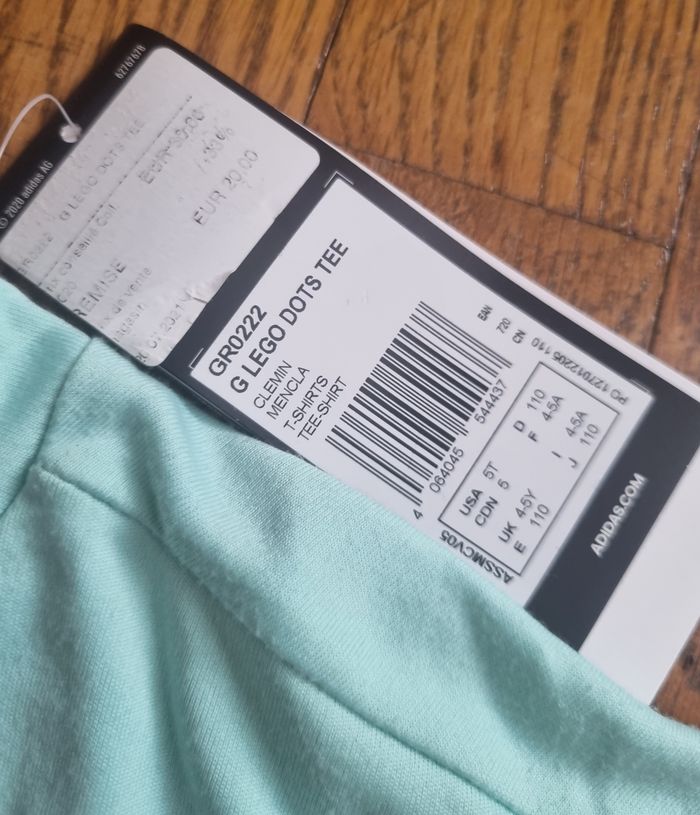 T-shirt mixte Adidas / Lego couleur vert d'eau taille 4/5ans neuf avec étiquette #adidaslego #tshirtadidas #tshirtadidaslego #tshirtvertdeau #adidas #lego #taille5ans #adidas5ans