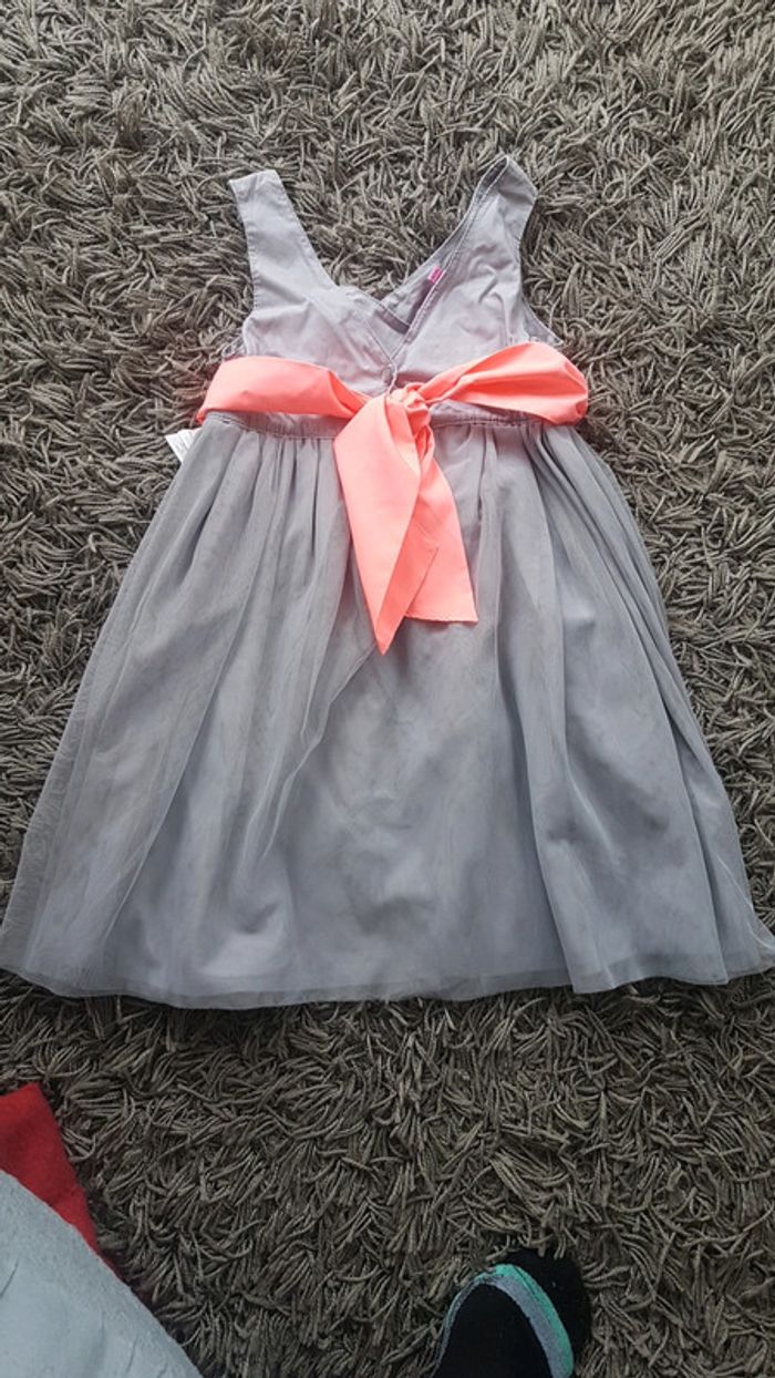 Robe grise avec tule ruban orange fluo t6 ans Une autre disponible en 10 ans