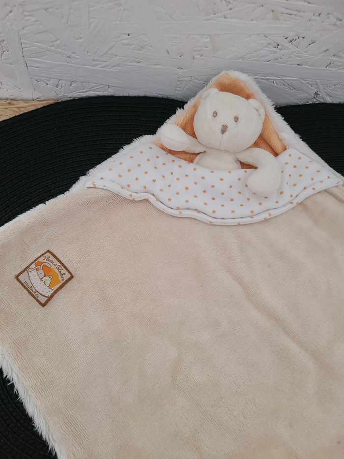 DOUDOU PLAT MOULIN ROTY OURS PLUME ET POLOCHON LIT BEIGE ECRU ORANGE - photo numéro 3