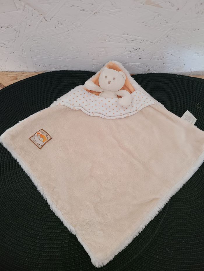 DOUDOU PLAT MOULIN ROTY OURS PLUME ET POLOCHON LIT BEIGE ECRU ORANGE - photo numéro 1