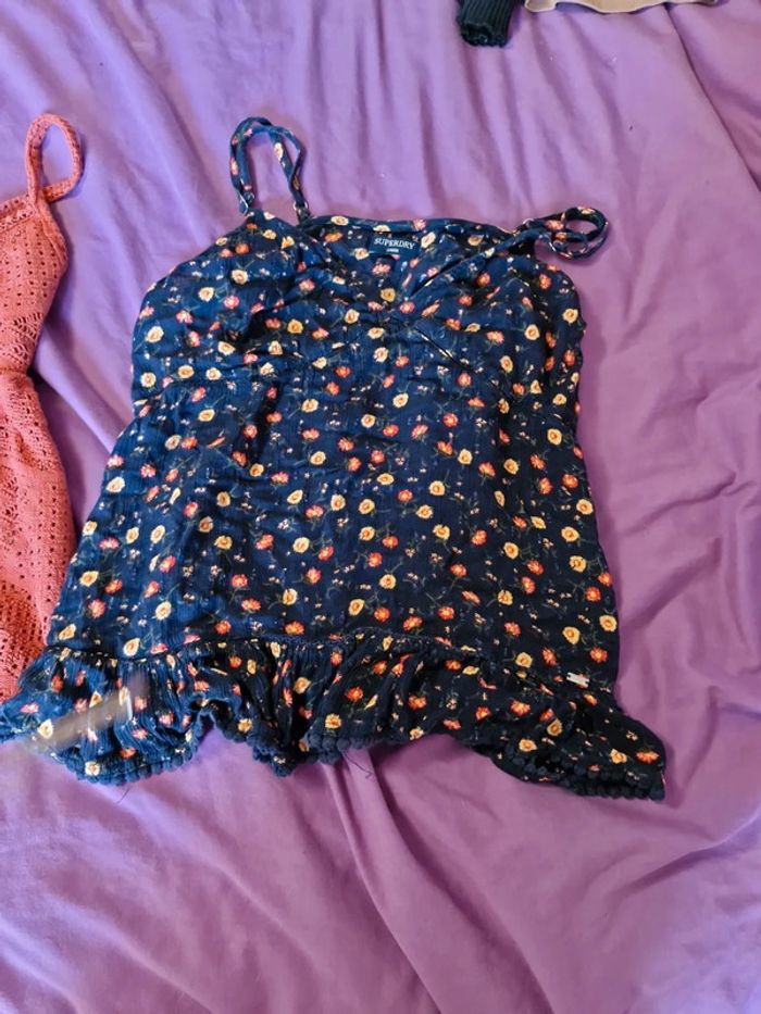 2 débardeurs fille 14 ans dont 1 superdry et 1 caché cache