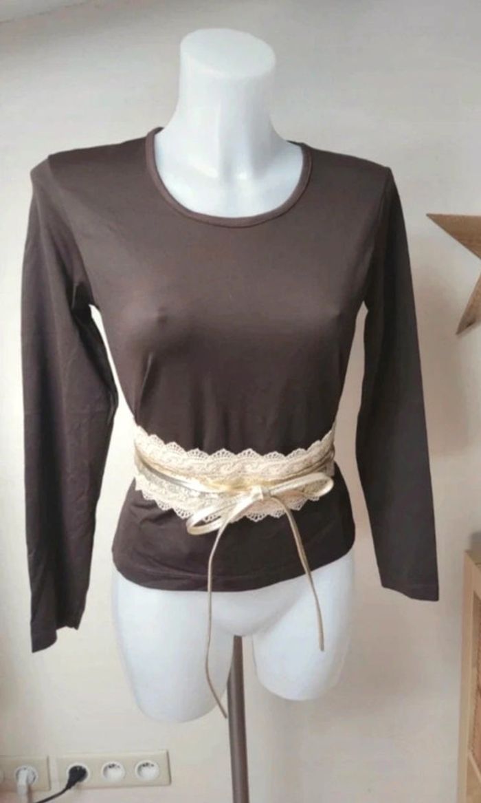 En très bon état. Tee shirt manches longues stretch, effet satiné Coloris marron Marque Promod taille L ⚠️ Je fais des envois via tous les points relais sauf Colissimo !!! #femme40memsdu95 #Teeshirtpromod40