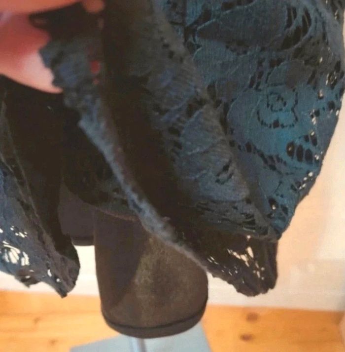 En très bon état. Jupe mi longue dentelle Burton noire. Arrive au dessus du genou, doublure, taille M. Longueur 54 cm ⚠️ Je fais des envois via tous les points relais sauf Colissimo !!! #femme38memsdu95 #jupeburton38