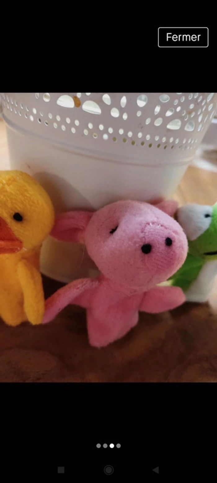En très bon état. Lot de 3 marionnettes à doigt, un canard, un cochon et une grenouille 🐸. Idéal pour raconter des histoires aux enfants. ⚠️ Je fais des envois via tous les points relais sauf Colissimo !!! #marionnettesdoigts #marionnettesanimaux