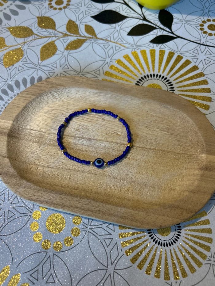 Bracelet perle de rocaille bleu doré - photo numéro 2