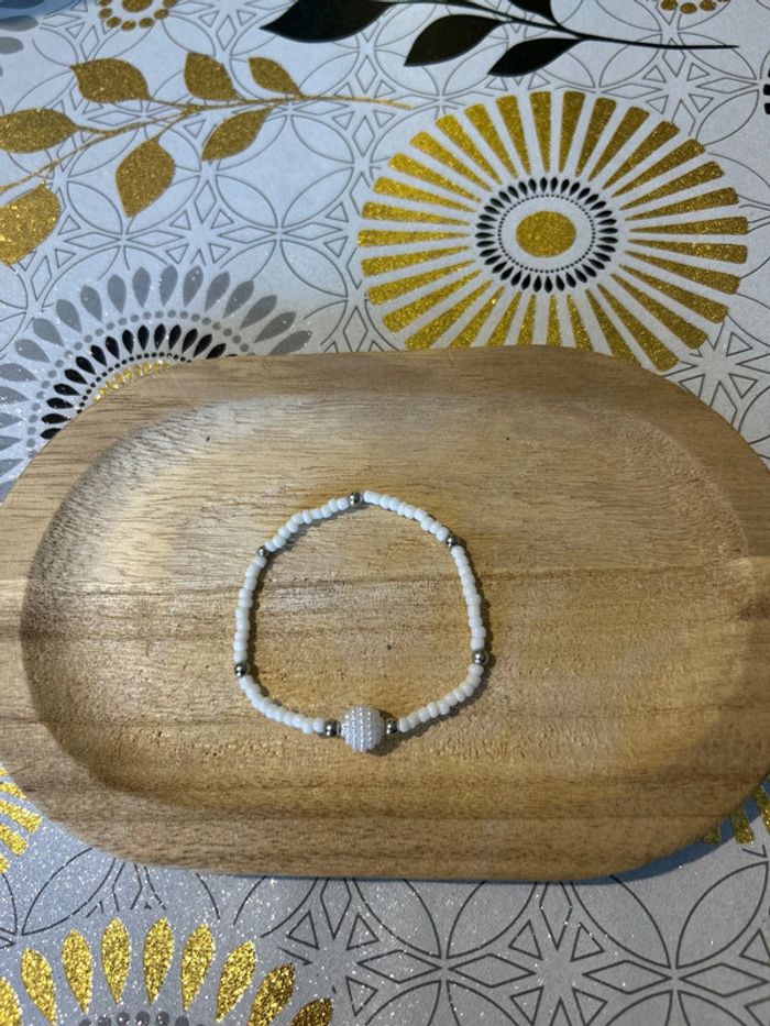 Bracelet blanc argent perle de rocaille - photo numéro 2