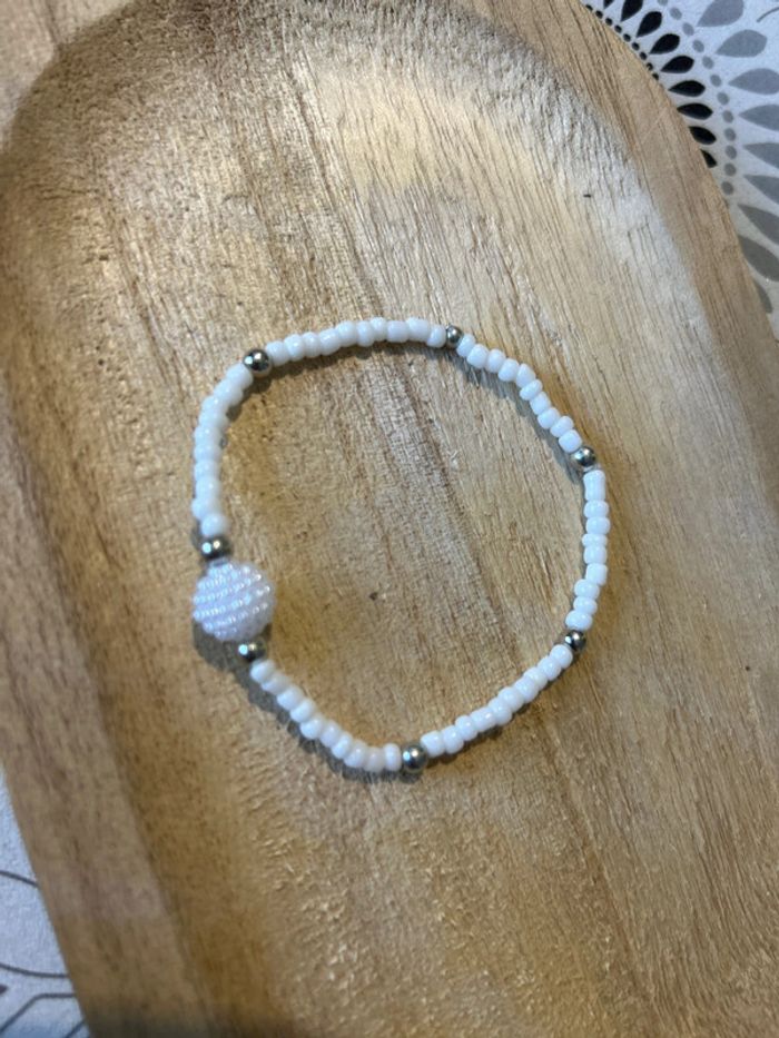 Bracelet blanc argent perle de rocaille - photo numéro 1
