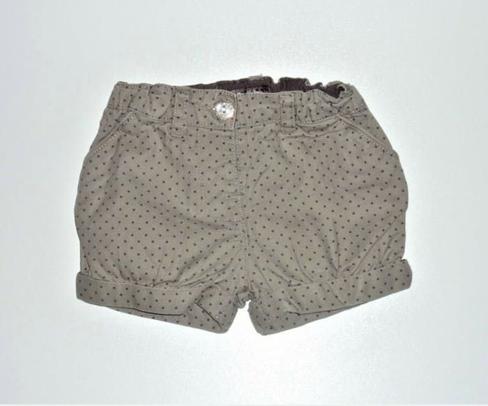 Short de marque BOUTCHOU d'occasion en excellent état. De couleur taupe, à pois couleur violine. Ceinture ajustable. Bout'chou Vide dressing professionnel