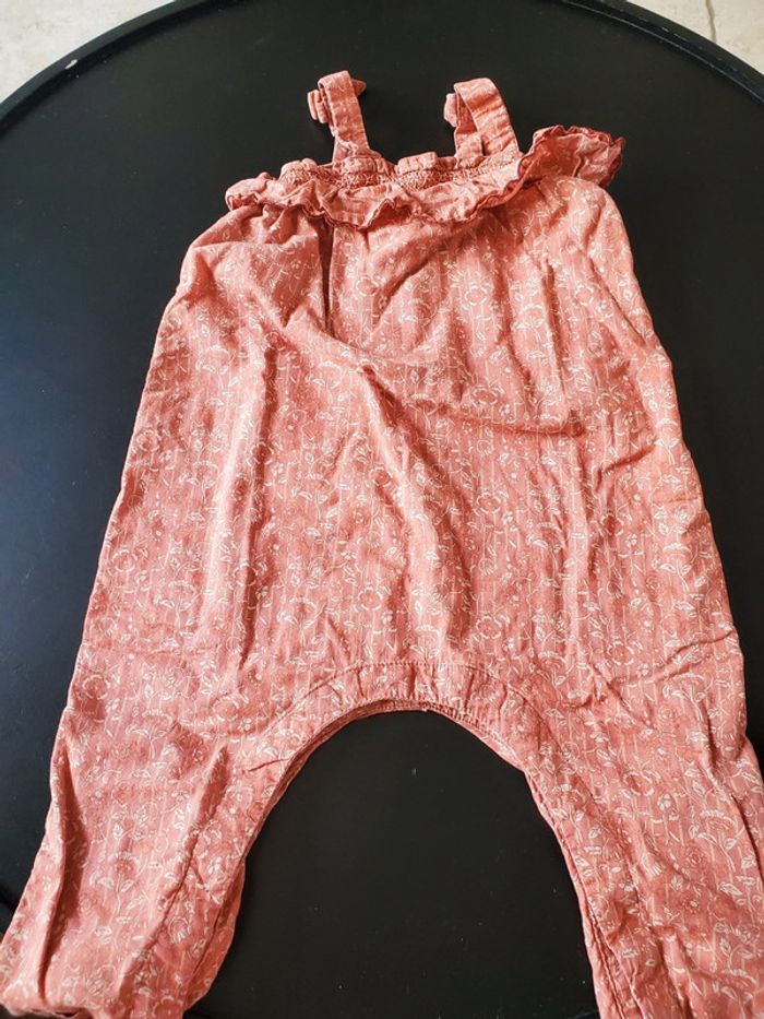 Salopette d été. Tissu très léger idéal pour l été ou la mi saison. Très jolie imprimé. Très bon état. Kiabi 18 mois