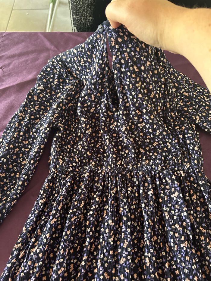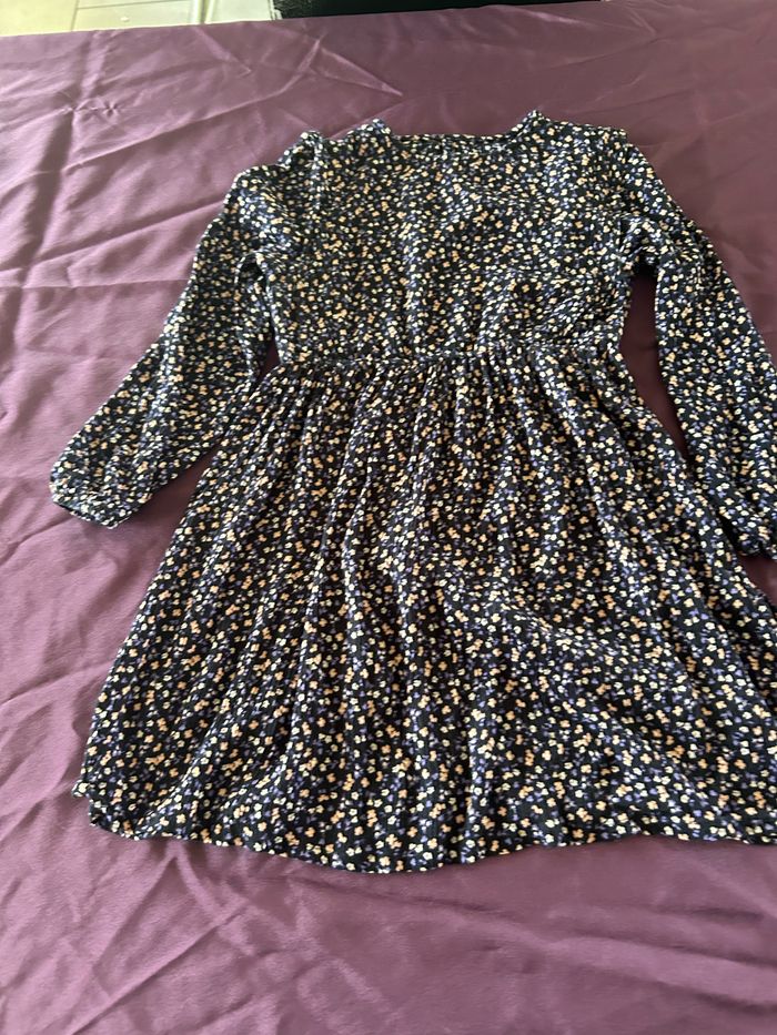 Robe mi saison manches longues bleu marine et violette motif fleuri 8 ans - photo numéro 3