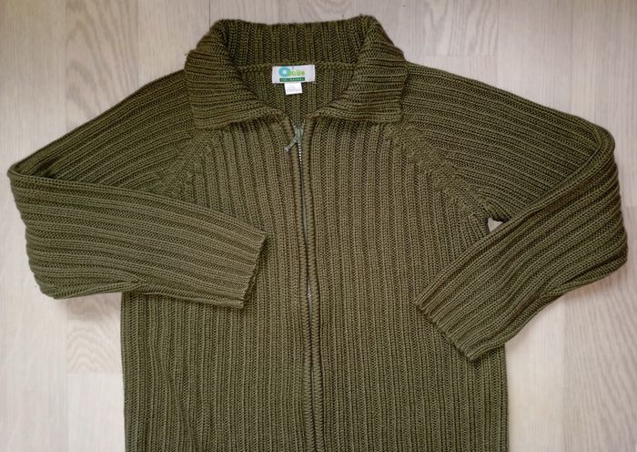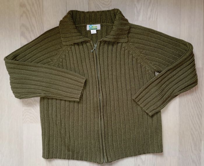 Cardigan en laine acrylique à torsades kaki vert olive Marque : Vert Baudet T. 8 ans Très bon état général