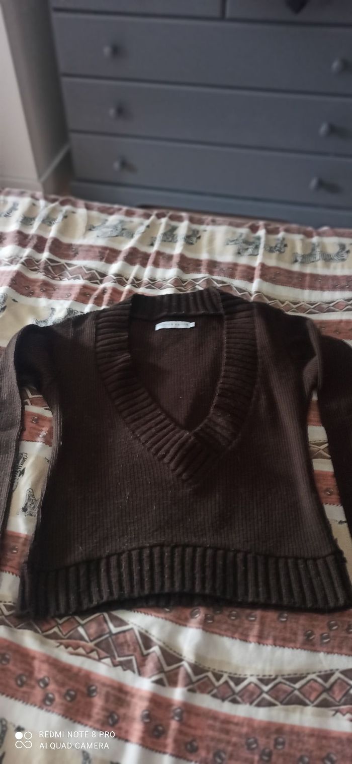 Vends pull marron col v t. 38 cache cache