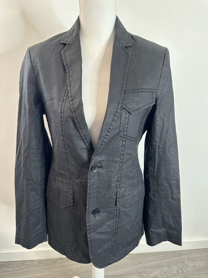 Blazer - Excellent état - Taille 36 équivalent S - Springfield Up - Doublure intérieure - Coupe oversize - Se ferme avec deux boutons - Épaulettes intégrées - Tissus huilé - Pas d’étiquette de matière Dimensions: - 40cm niveau épaules - 50cm niveau aisselles - 70cm de long