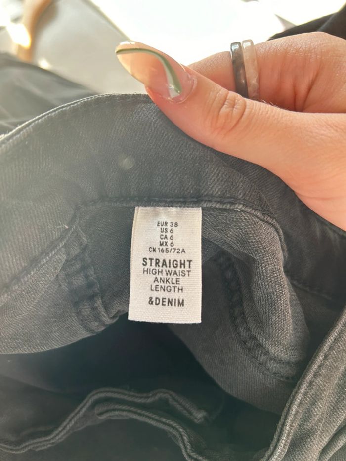 jeans noir mom h&m taille haute taille 38 détail sur le bas des jambes très peu porté