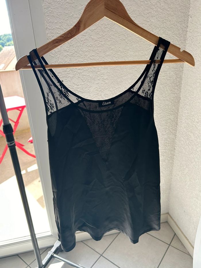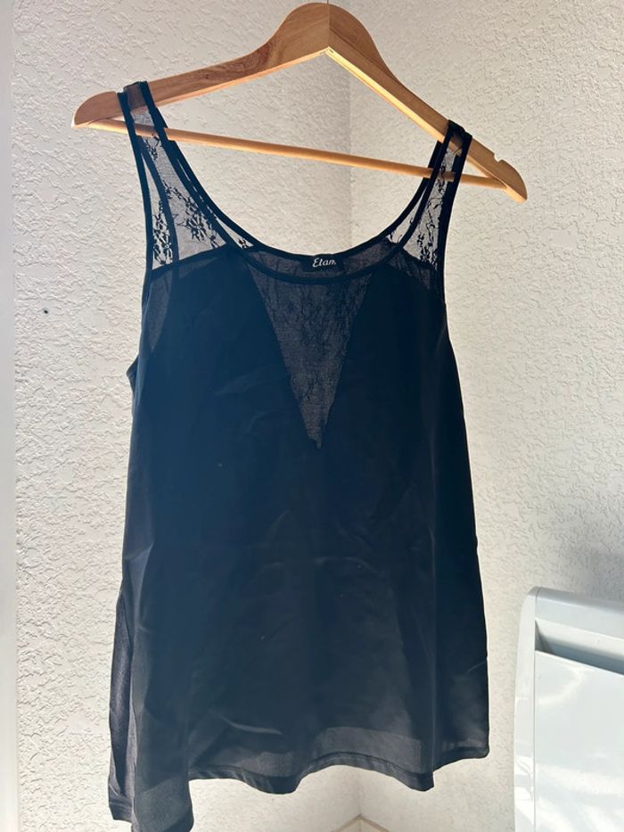 débardeur noir marque etam taille M détail bretelles et décolleté brodées