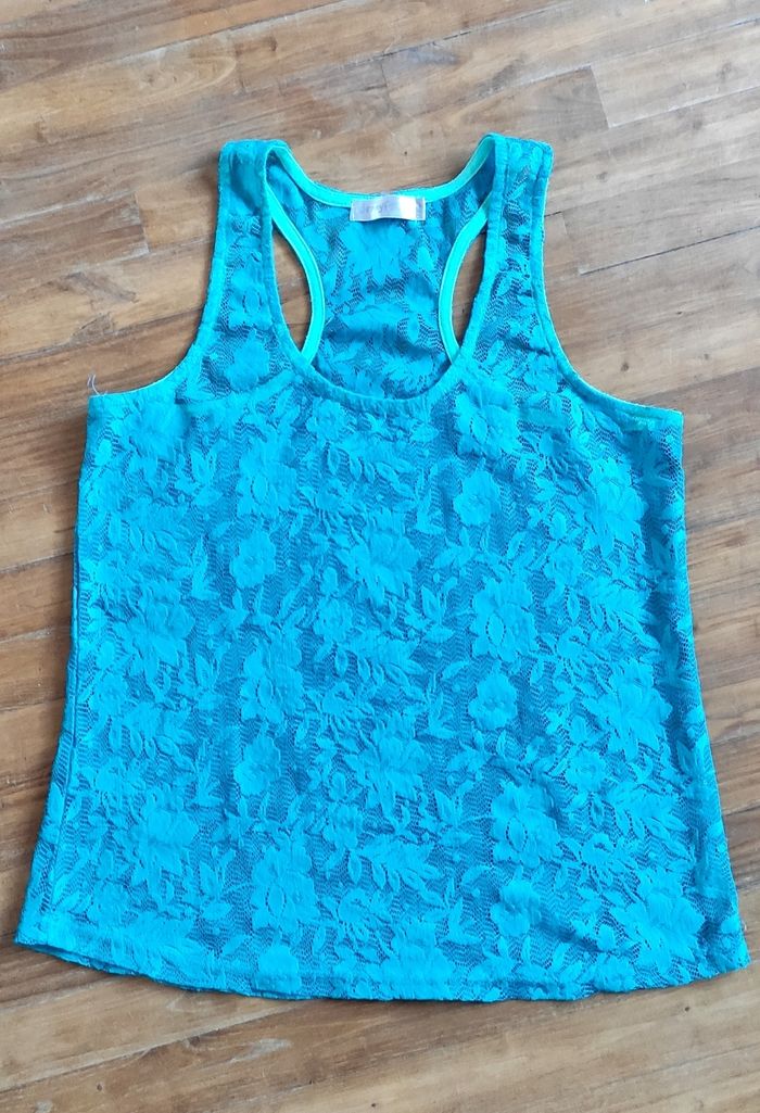 Débardeur bleu dentelle - photo numéro 1