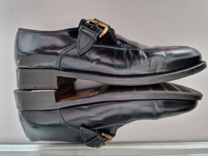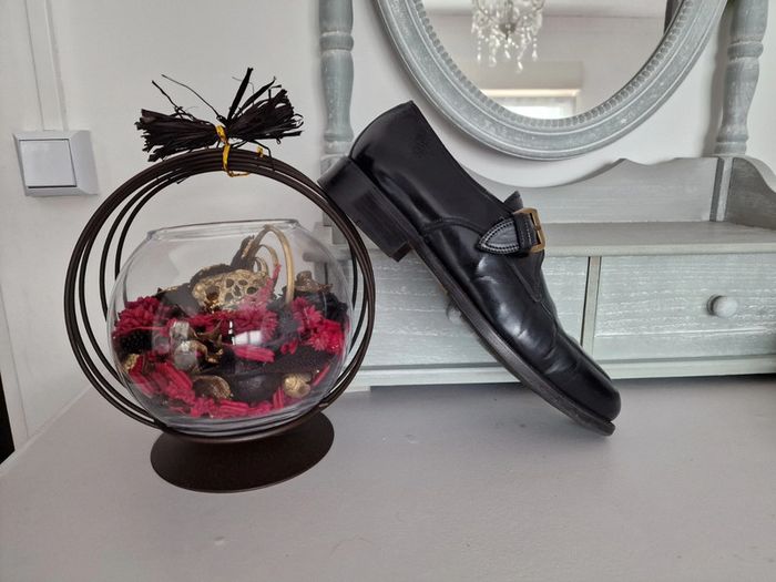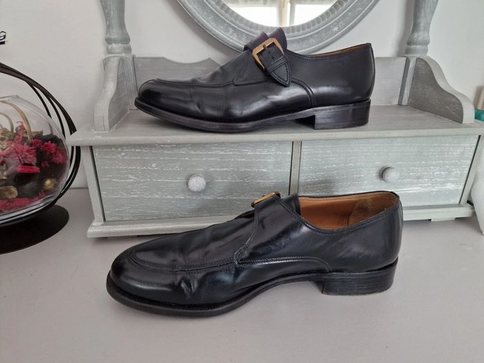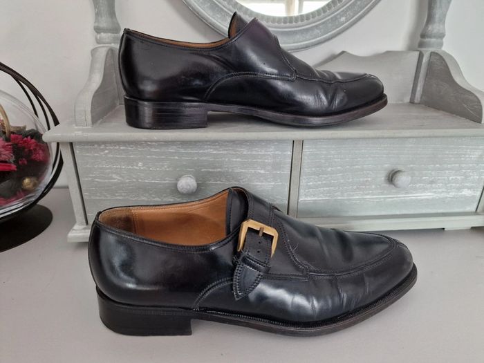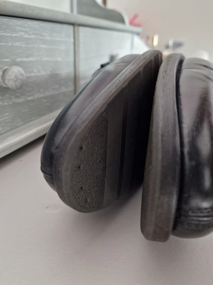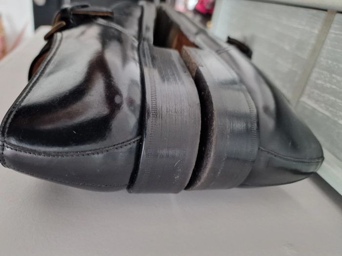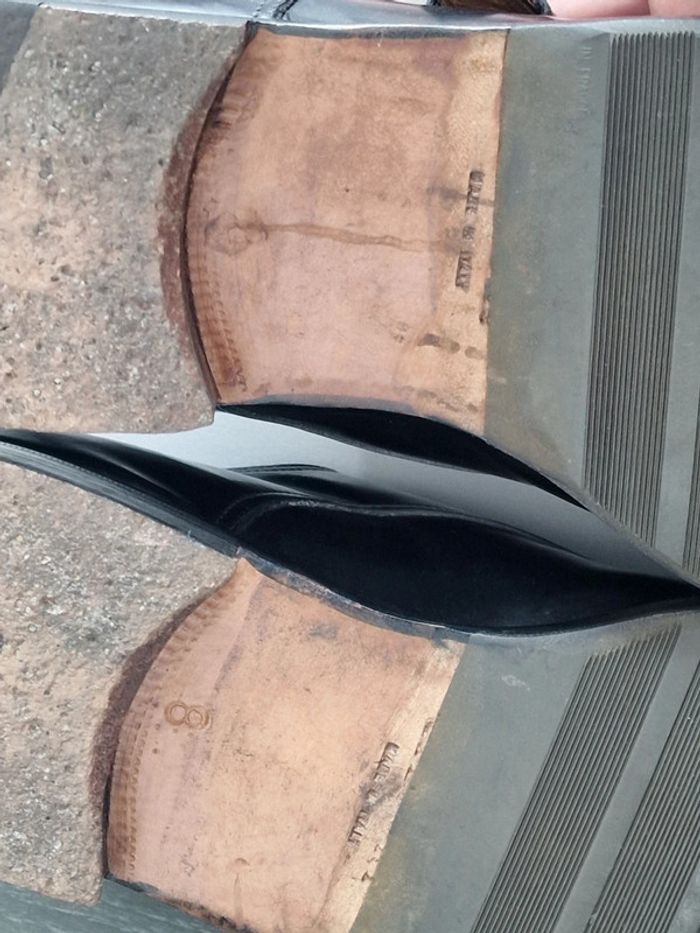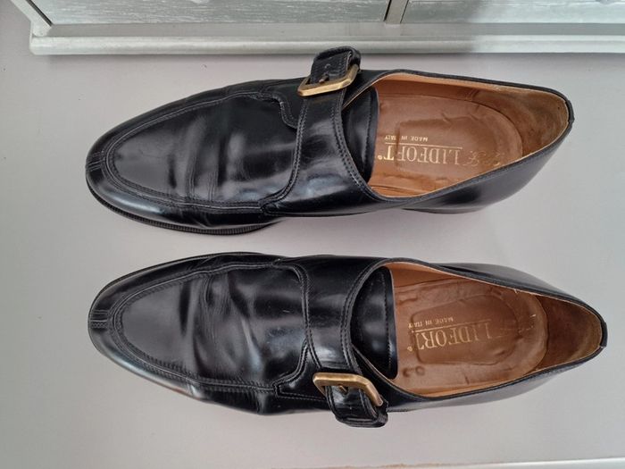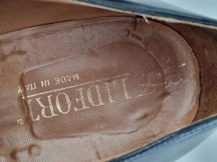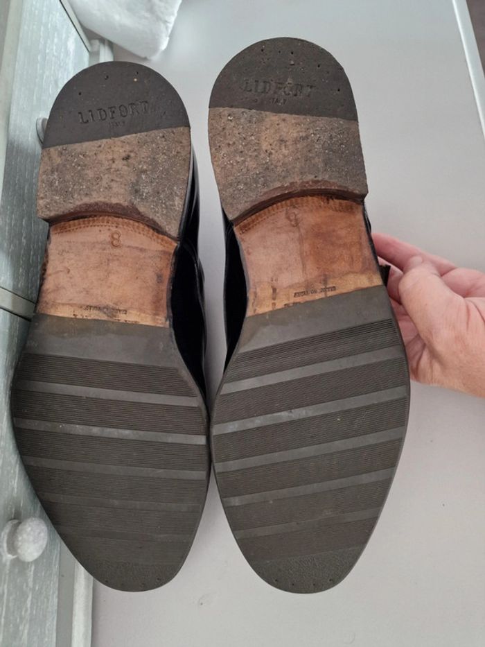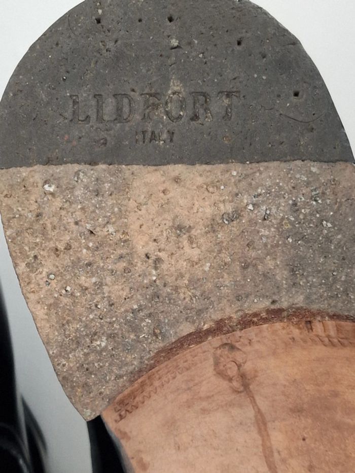 Mocassin made in italy LIDFORT Taille 8 soit 41 En cuir noir , semelle antidérapante ajoutée par un professionnel, voir photo