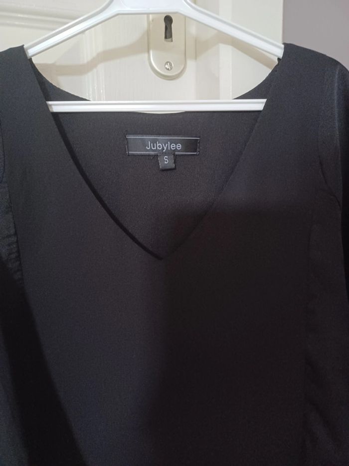 Ensemble robe noire fluide satinée et ceinture cuir - photo numéro 2