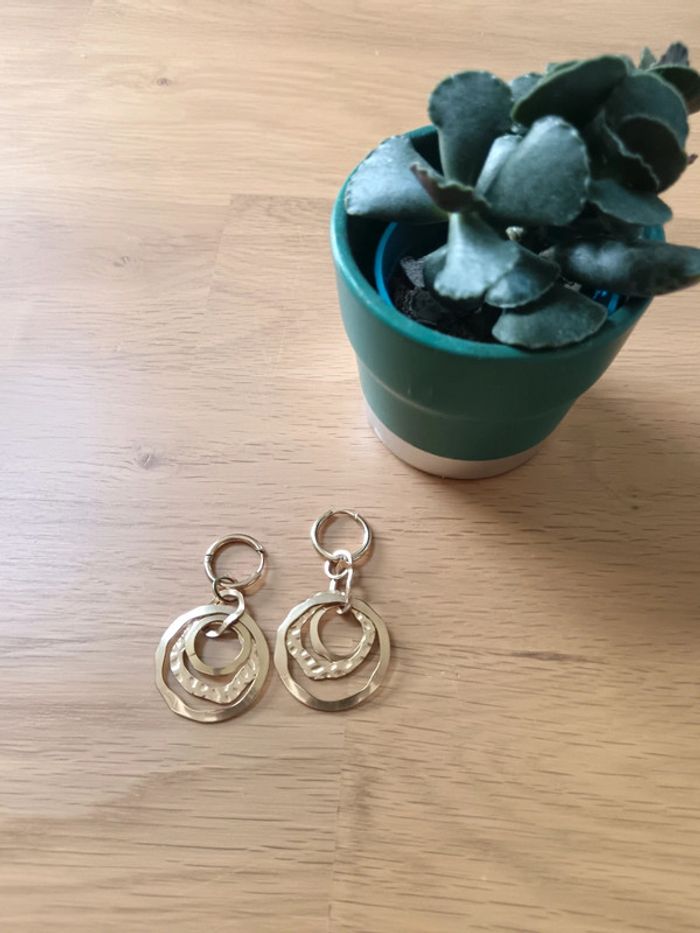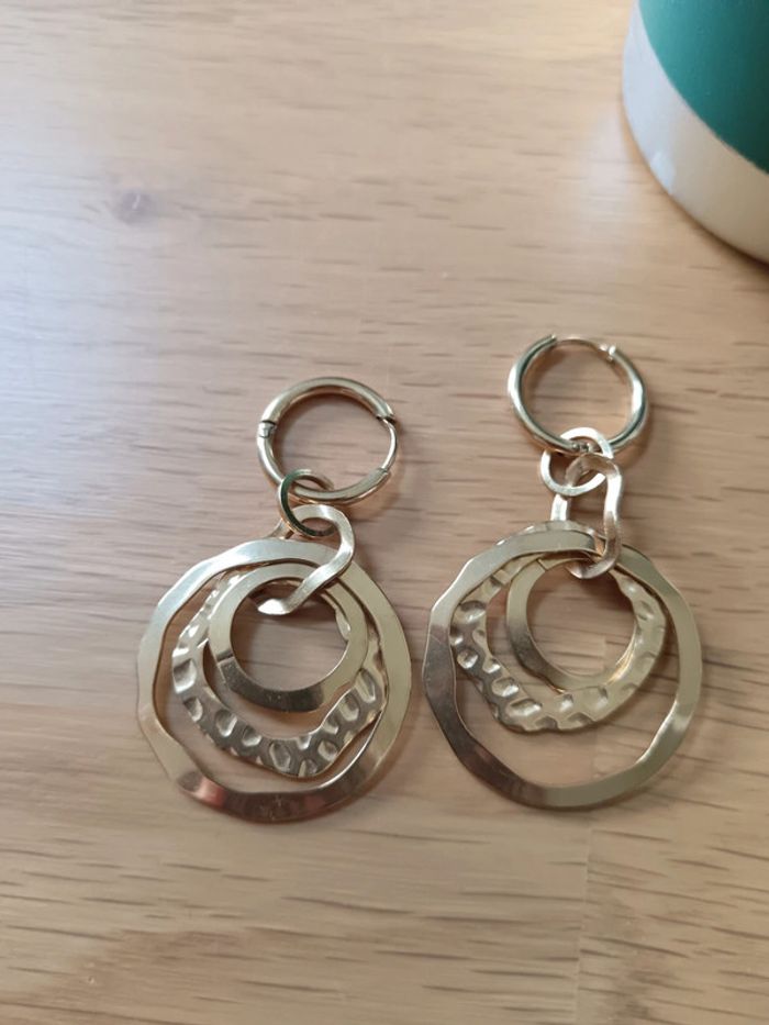 Créole avec anneau martelé. Jamais portée. En acier inoxydable