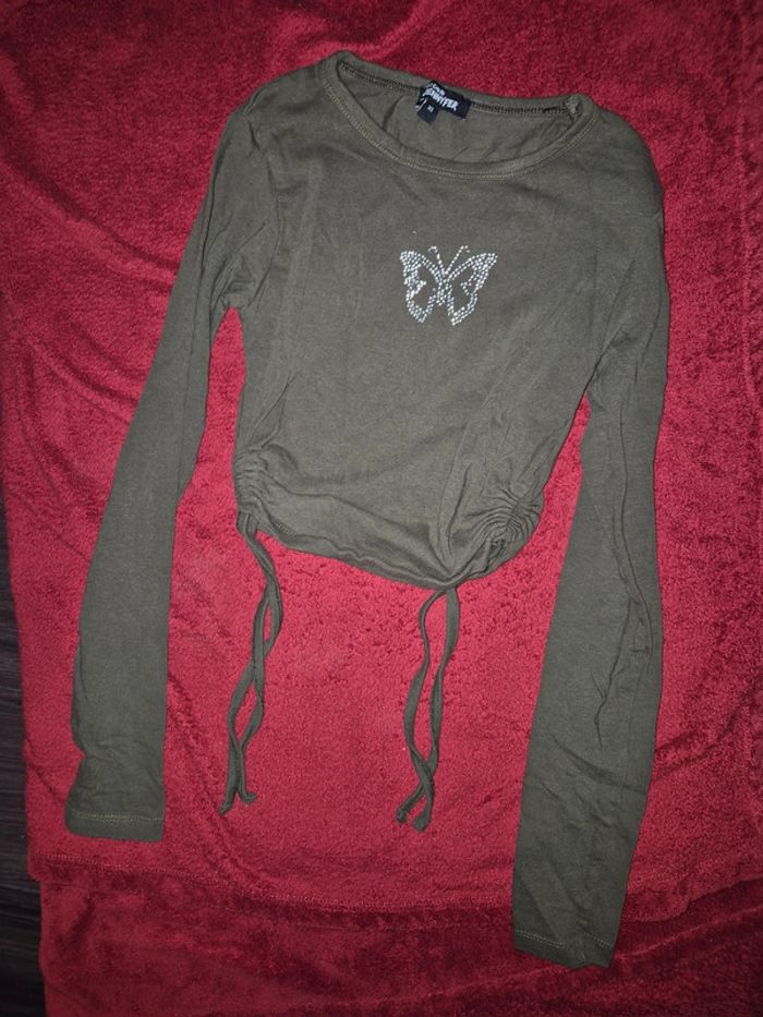 🌟 Dressing classé ( voir profil 👉) et Réductions sur les lots activées 👇 ▪︎Haut manches longues ▪︎Papillon en strass ▪︎Neuf seulement lavé 1 fois ▪︎Kaki #milihow_girl11ans #milihow_girl12ans #milihow_women