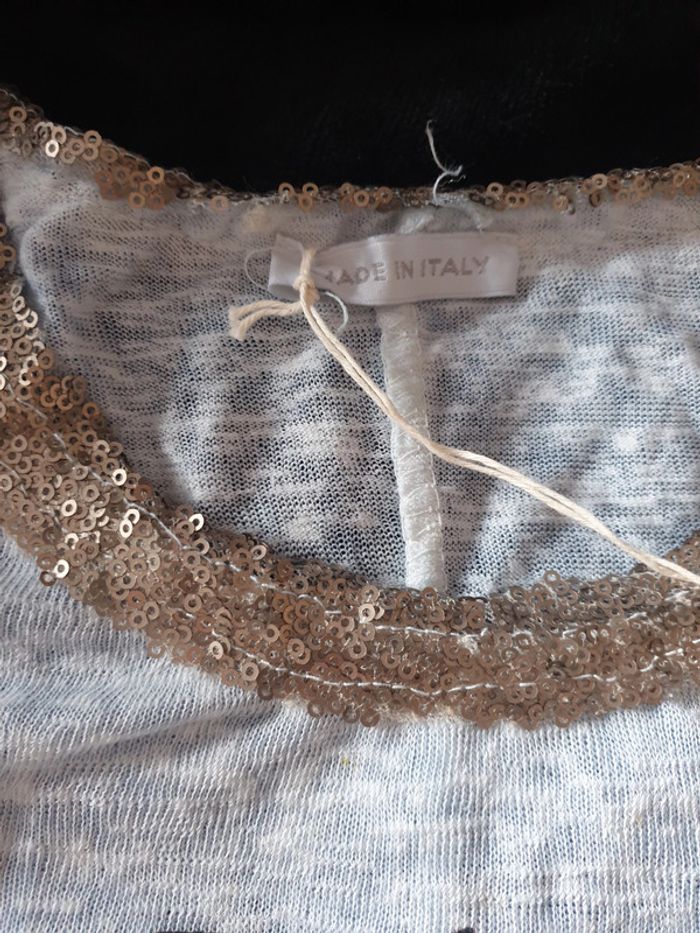 Tunique ample matière légère, neuve, avec sequins et strass. Taille unique (Large)