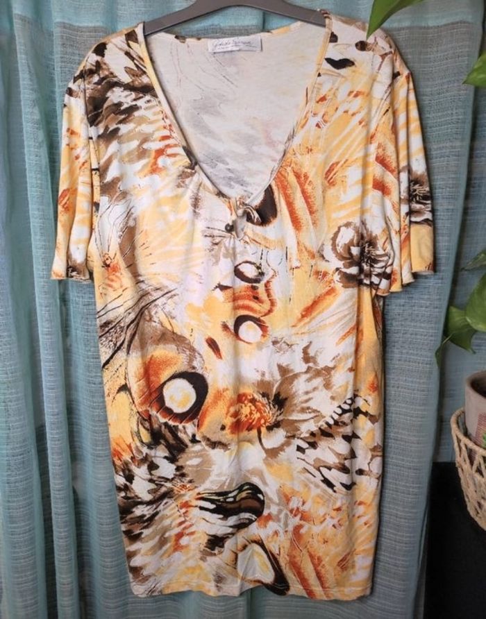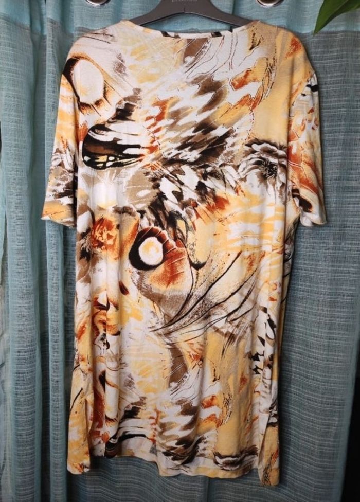 Tee shirt imprimé à matière légère et fluide en parfait état. Taille 52