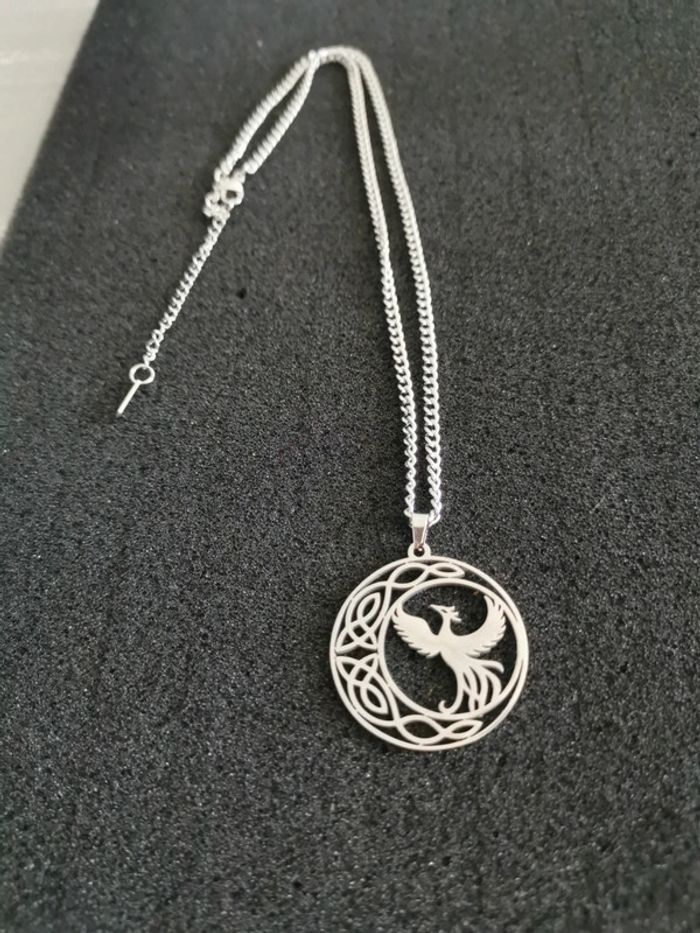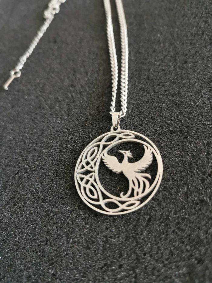Collier et pendentif spirituel le Phoenix et nœuds celtiques