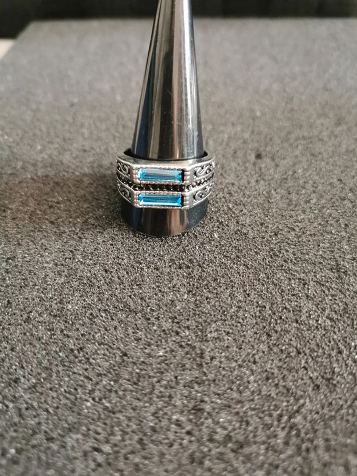 Chevalière homme acier et pierre bleue T12 - photo numéro 1