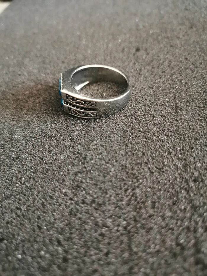 Chevalière homme acier et pierre bleue T12 - photo numéro 3
