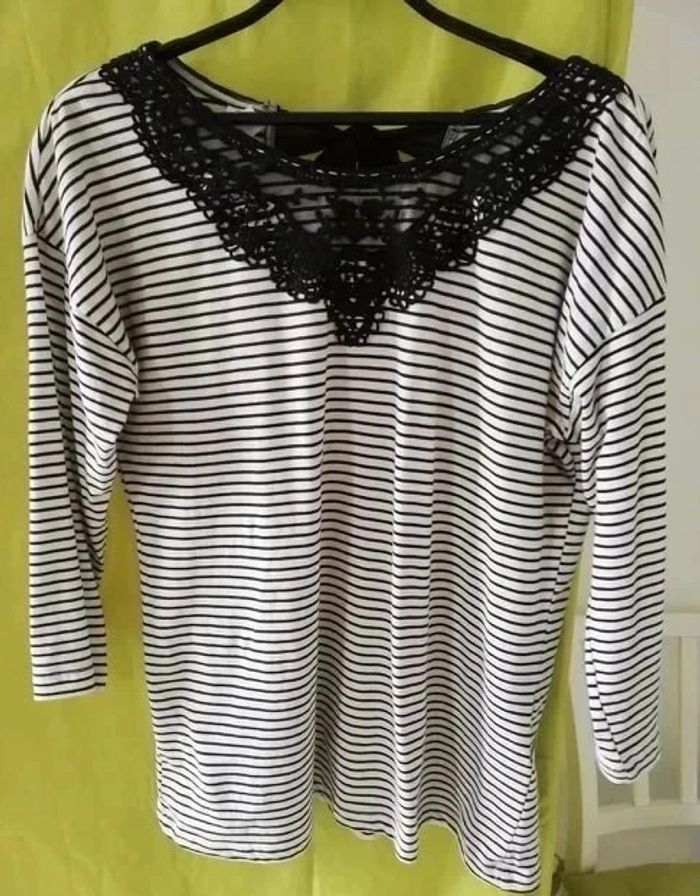 Tee shirt Rayé kiabi Col dentelle noir T L - photo numéro 4