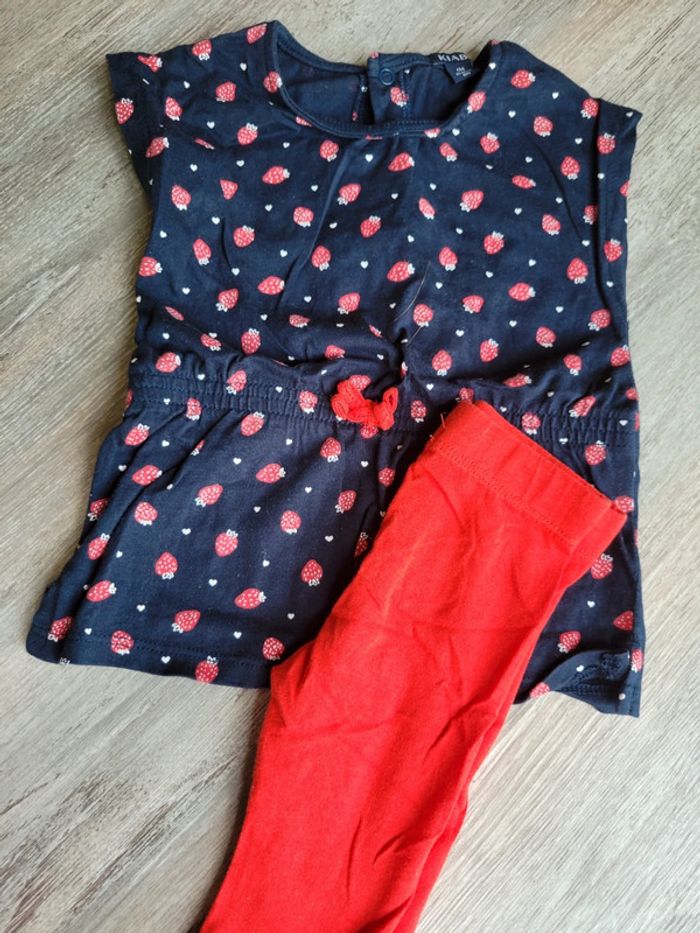 Ensemble Robe fraise 🍓 et legging rouge Kiabi 6mois Neuf #usagiichanbaby #usagiichan6mois