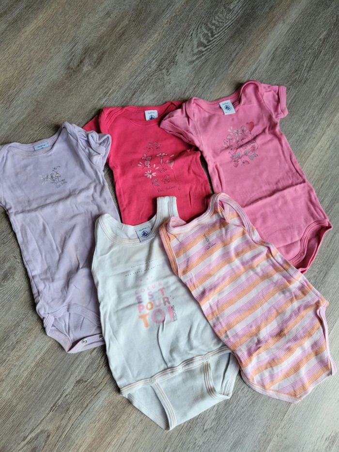 Lot de 5 bodie. 3x manches courtes : ils sont en très bon état 2x sans manches : ils sont en bon état avec tâches que je donne Petit bateaux #usagiichanbaby #usagiichan6mois