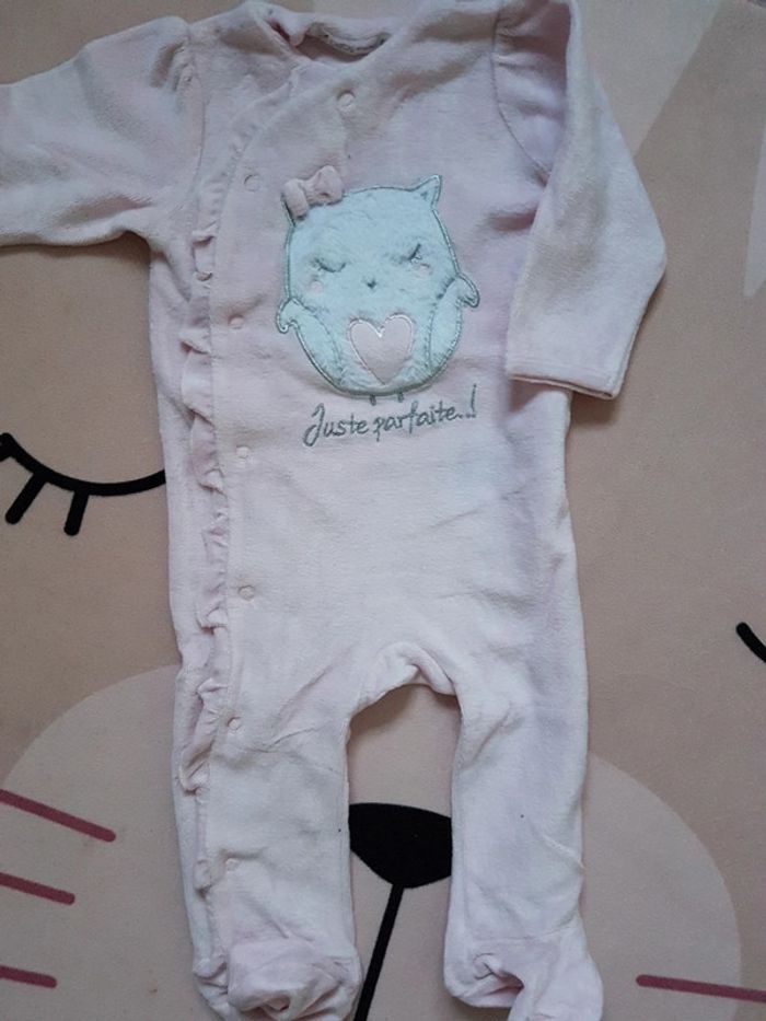 Grenouillère 1 pièce. Motif chouette "juste parfaite" Taille 6 mois. Coloris rose pâle et chouette blanche. Marque gémo. Rarement mis comme neuf. Pour mes autres habits et accesoires bébés. c'est ici ➡️ #UsagiiChanBaby 👶 #UsagiiChan6mois