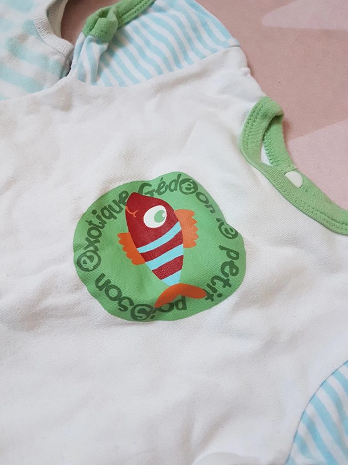 Lot de 2 barboteuse. Motif poisson et tortue. Coloris blanc, bleu et vert. Taille 6mois. Rarement mis. Pour mes autres habits et accesoires bébés. c'est ici ➡️ #UsagiiChanBaby 👶 #UsagiiChan6mois