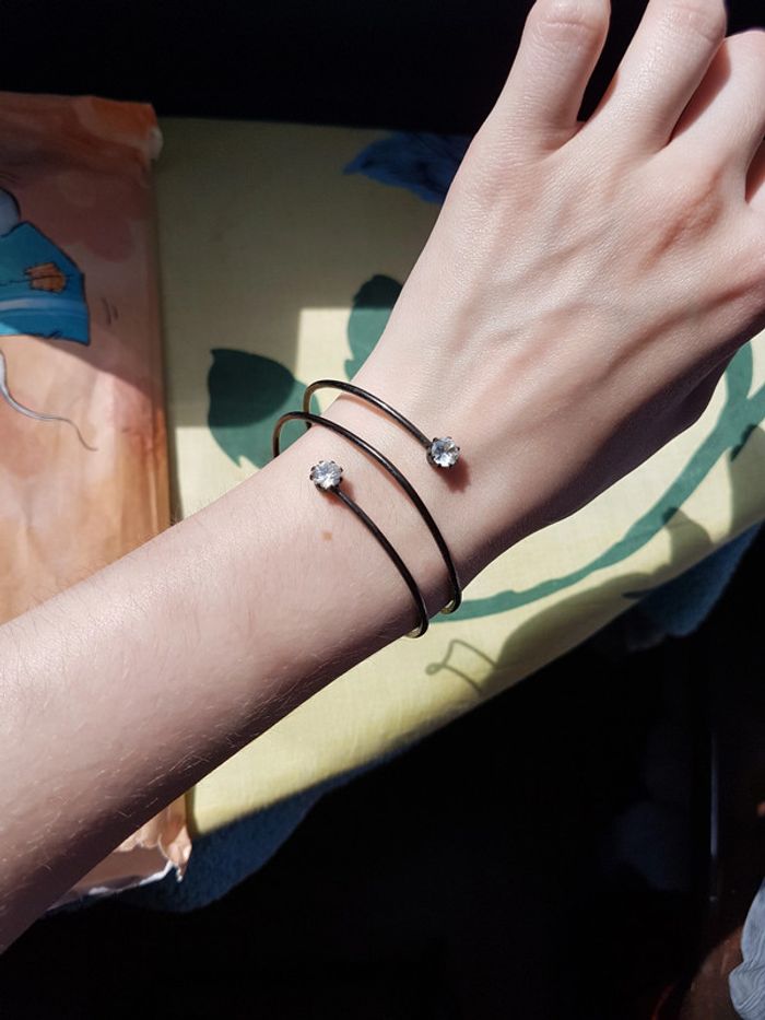 Bracelet noir avec 2 faux diamants. Jamais porté. Taille réglable. Pour tout mes autres Bijoux c'est ici : #UsagiiChanBijoux 💍