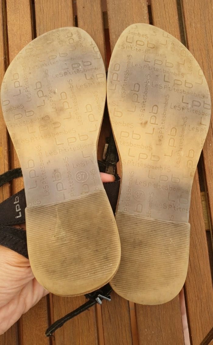 📌Si c'est votre première commande utiliser le code parrainage dans mon profil vous aurez une réduction 📌Sandales nu-pieds les p'tites bombes lpb pointure 37 ,bout de languettes un peu décousu, coutures usée au talon #chaussurefemme37_mondressing11_bv