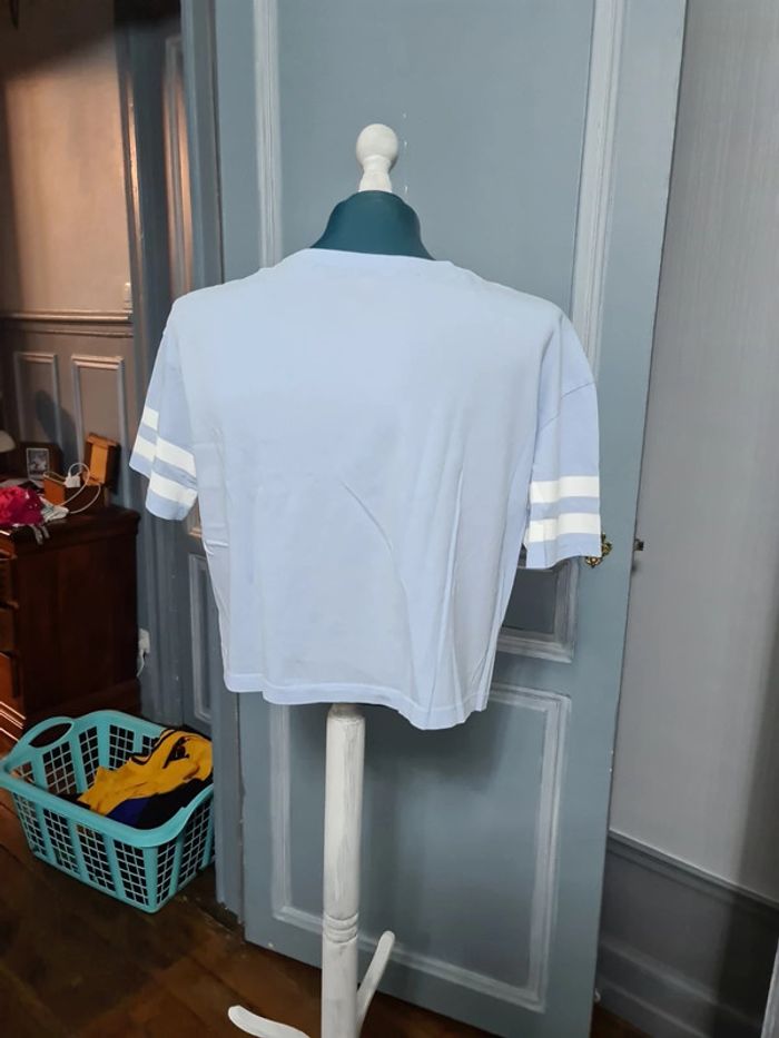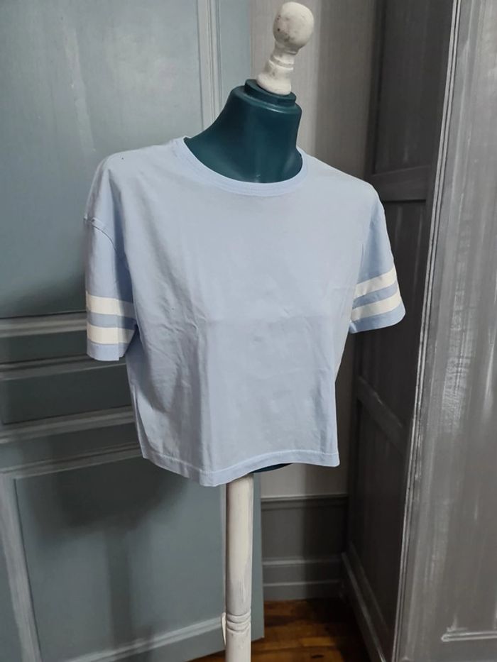 Tee-shirt fille Turquoise Bleu ciel En très bon état Manches courtes Avec rayures H&M 12-14 ans Les réductions sont activées sur les lots