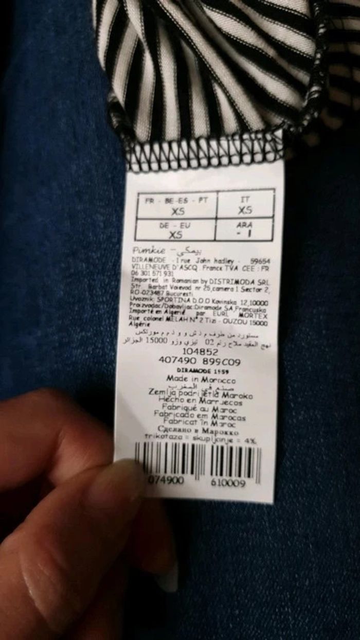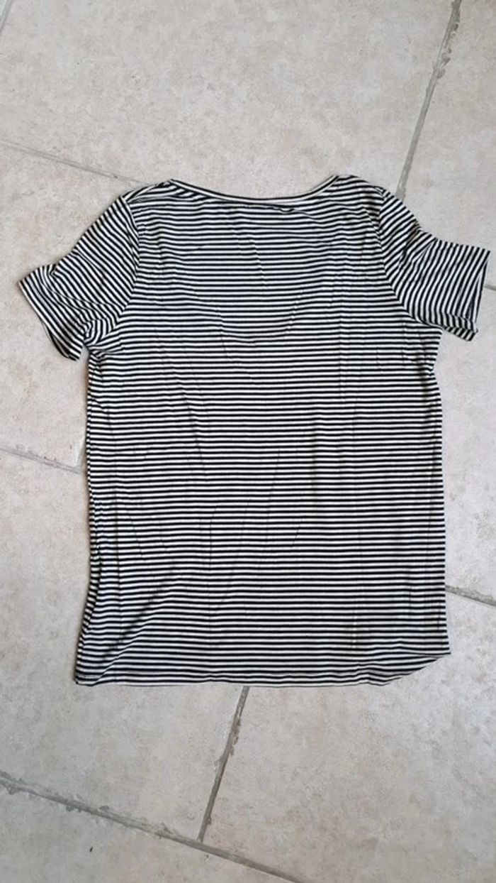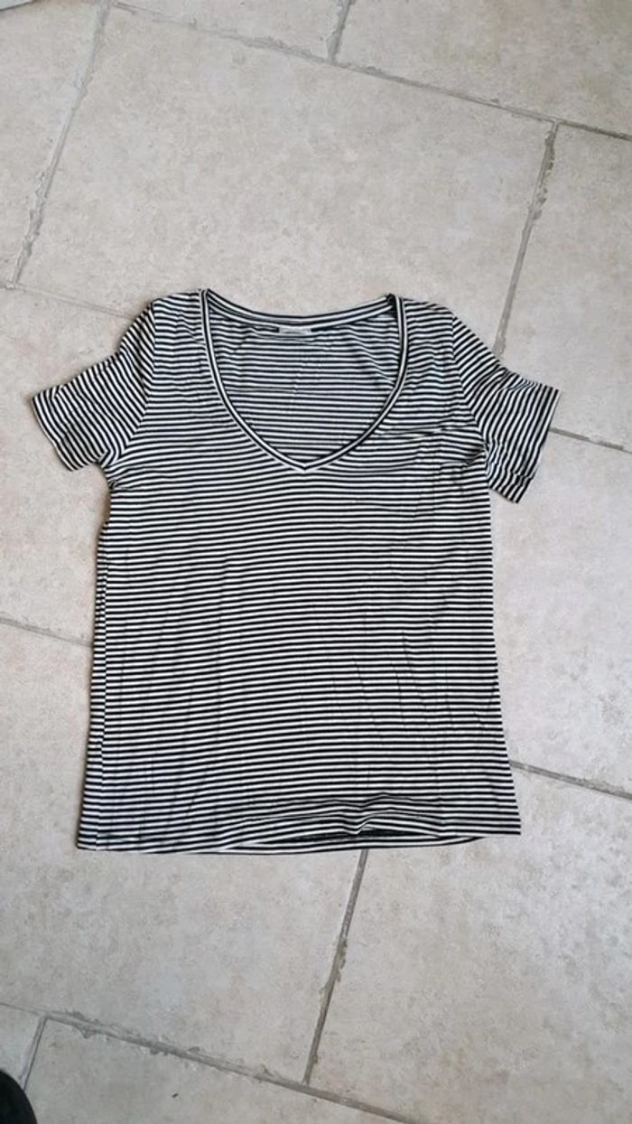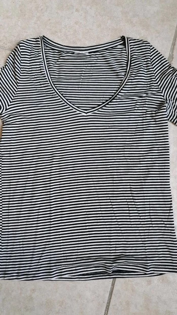 Tee-shirt femme En très bon état Porté 1 fois A rayures Texture douce Col en v Manches courtes Taille 34 Les réductions sont activées sur les lots
