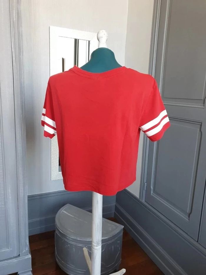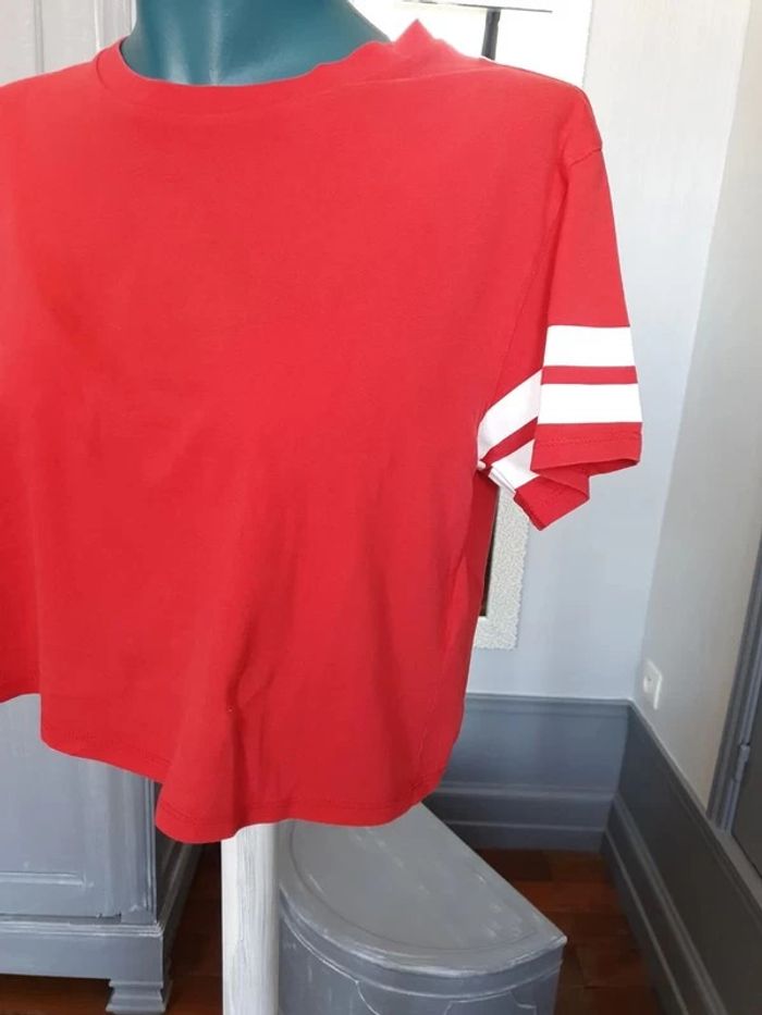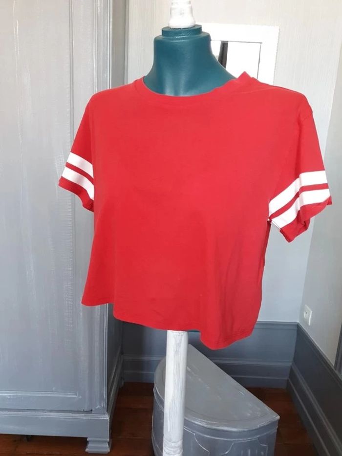 Tee shirt court femme Rouge En très bon état La couleur du tee shirt correspond plus à la photo 9 De marque H&M De taille S Avec lignes blanches Manches courtes Les réductions sont activées sur les lots