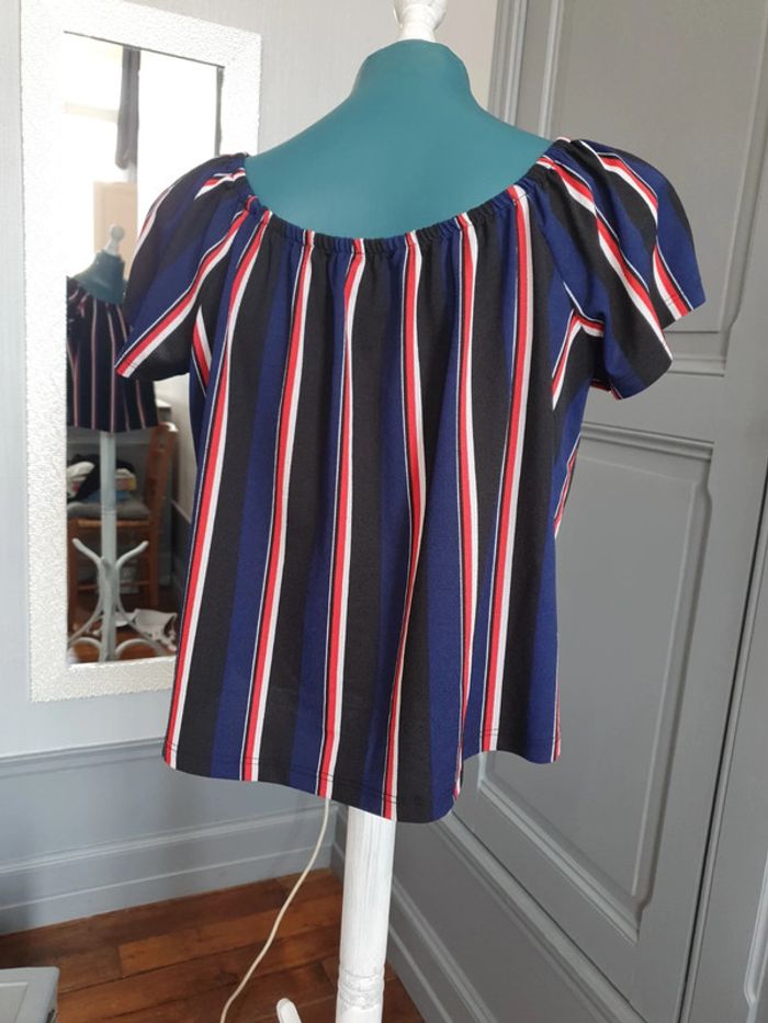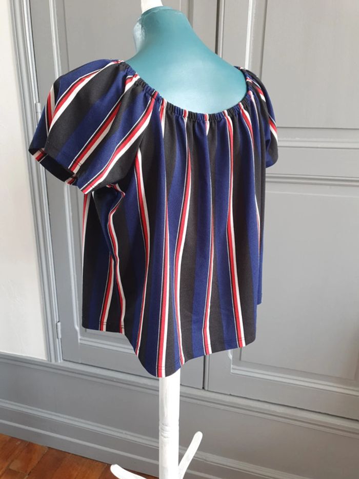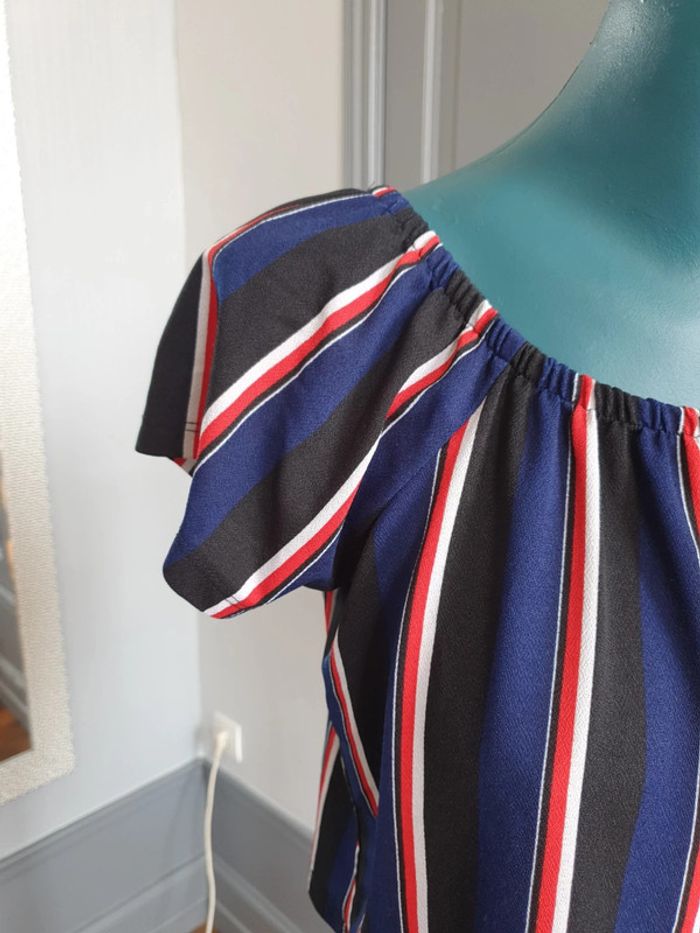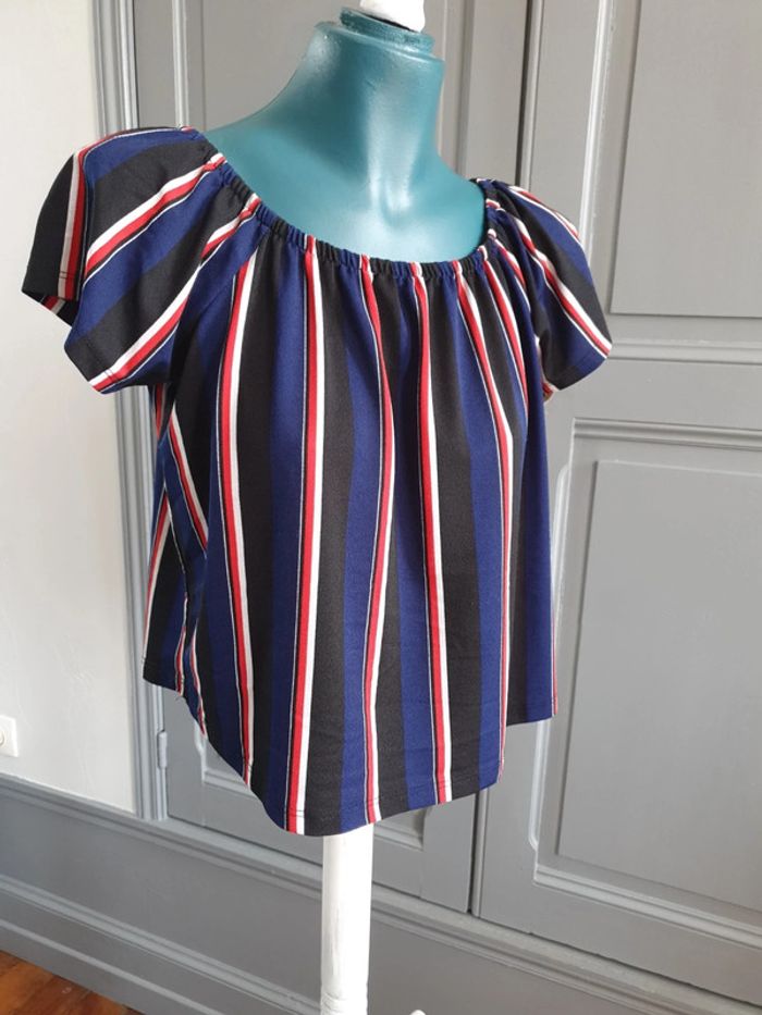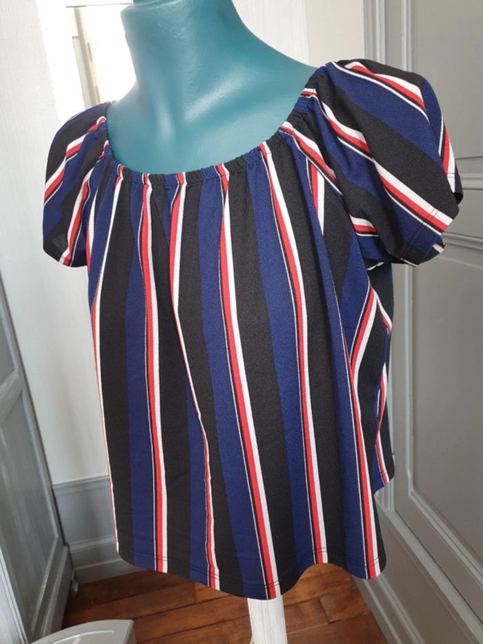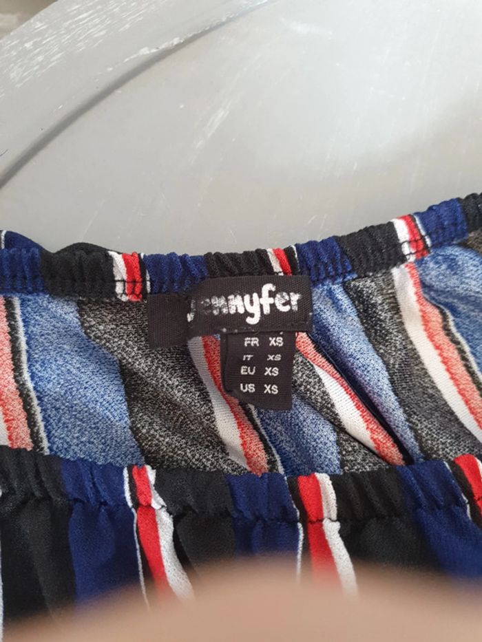 Tee-shirt femme En très bon état A rayures De taille XS De marque jennyfer Bleu, blanc, rouge et noir Avec élastique Les réductions sont activées sur les lots