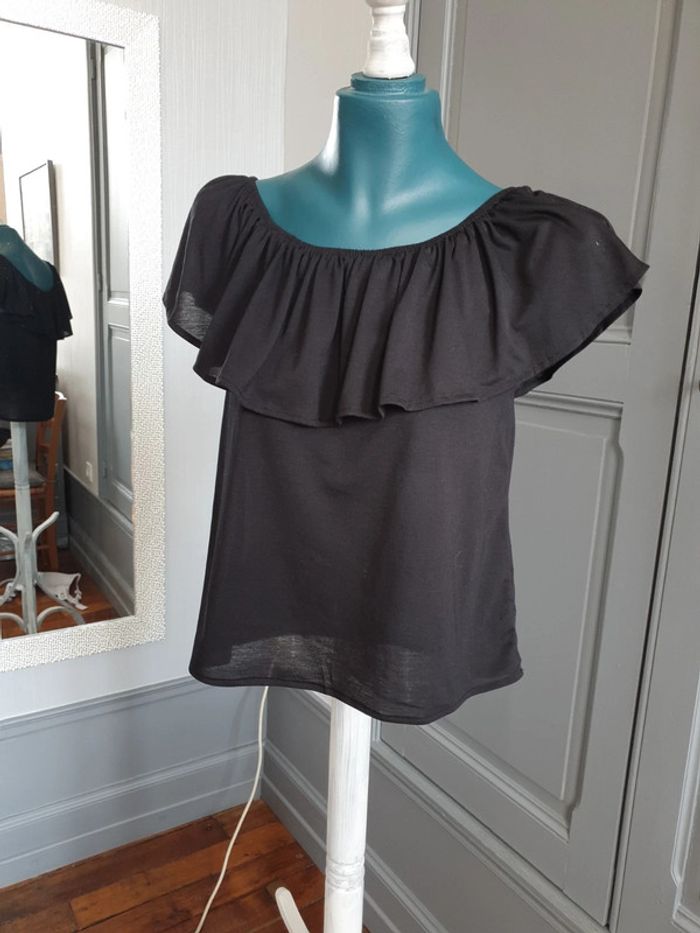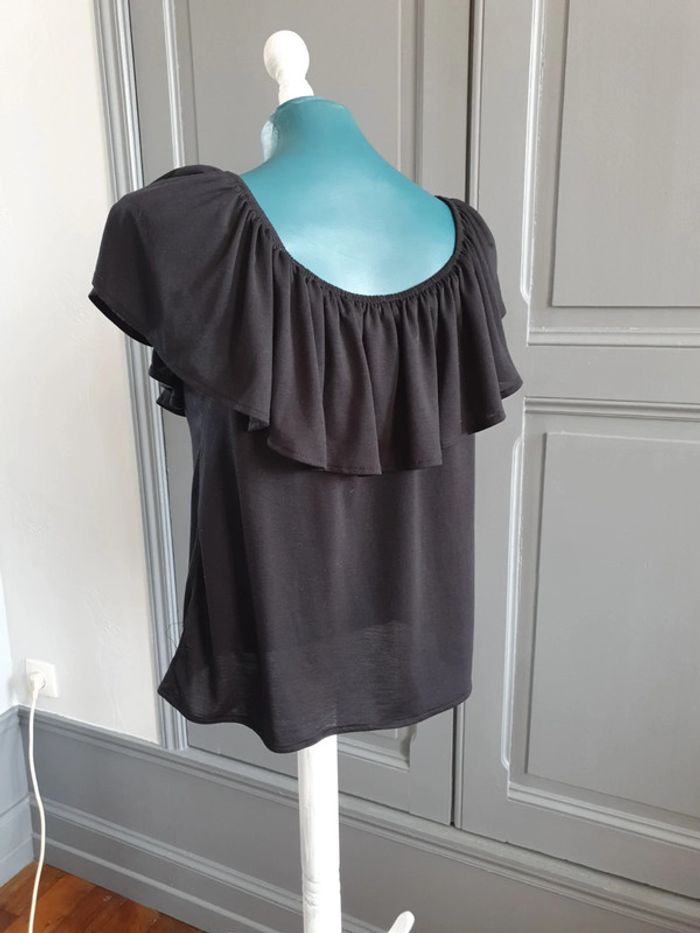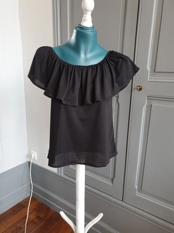 Tee-shirt femme En très bon état Noir Avec volants De marque H&M De taille XS Les réductions sont activées sur les lots