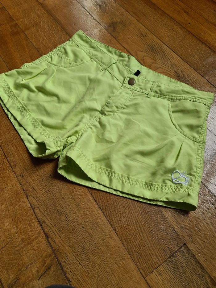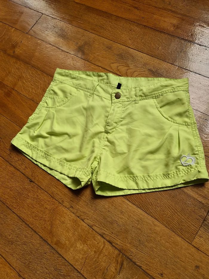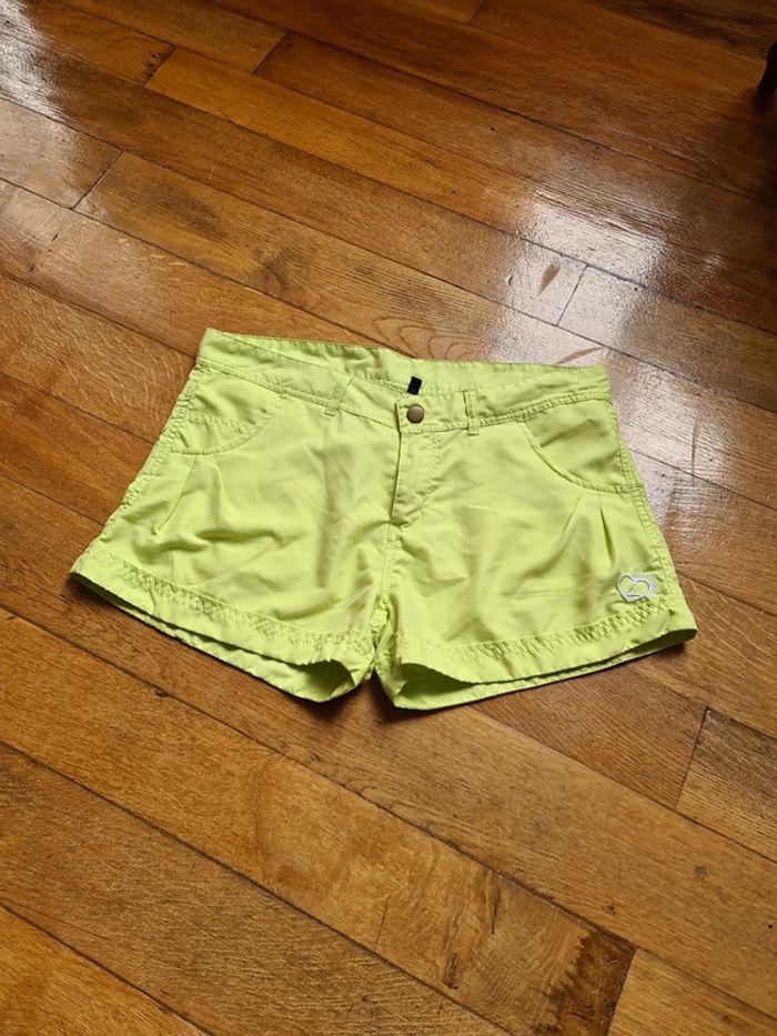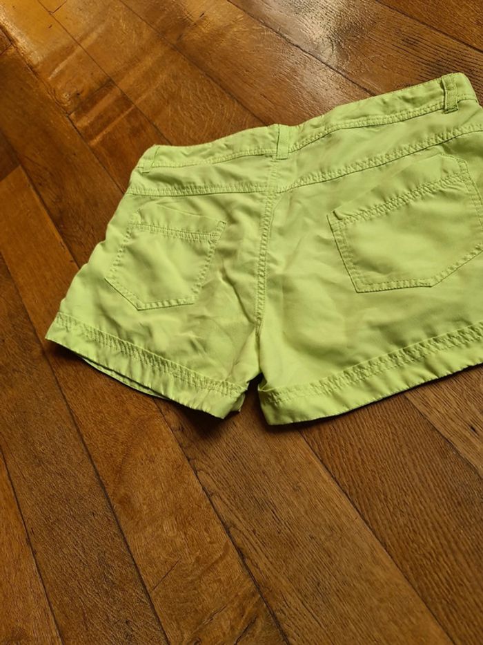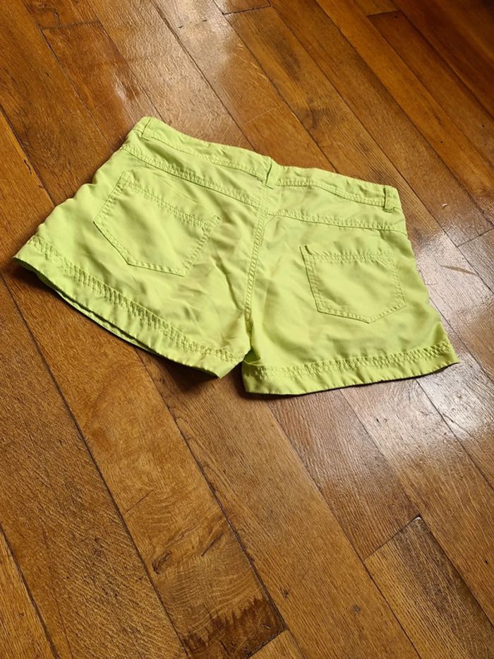 Short femme En très bon état Avec poches Vert uni fluo Possibilité de mettre une ceinture De taille 40 Les réductions sont activées sur les lots
