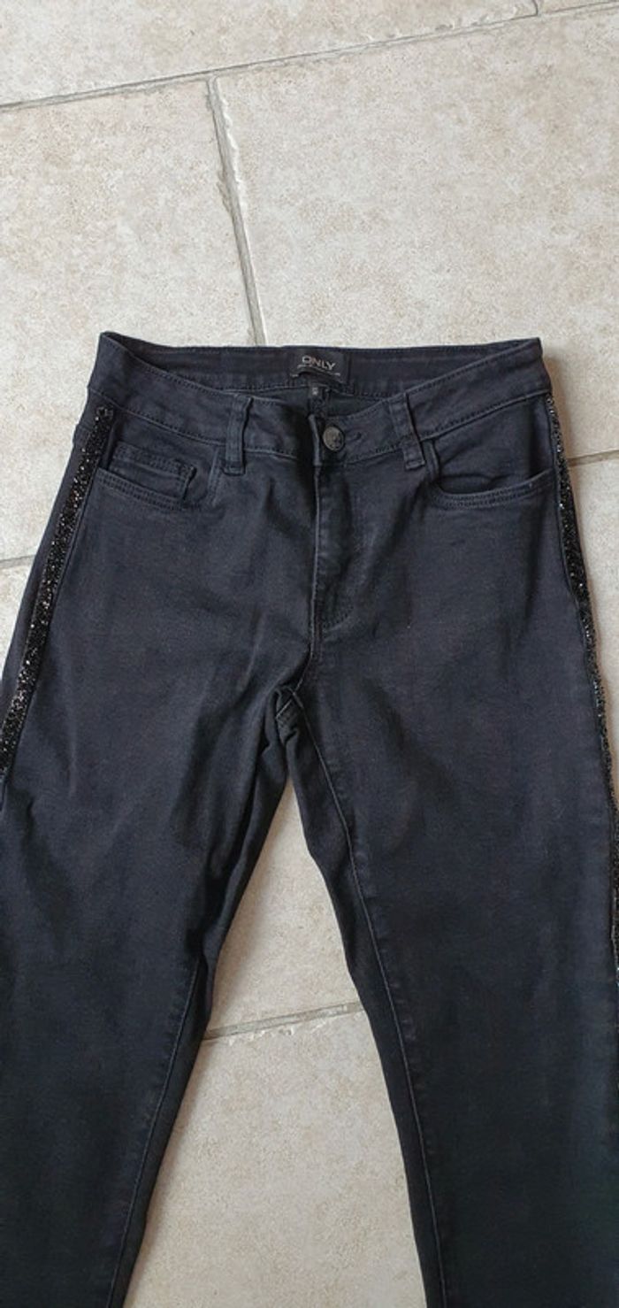 Pantalon femme L : 27 W : 32 De marque only Avec poches à l'avant et à l'arrière Acheté à 50 euros Neuf jamais porté Avec brillants sur le côté Les réductions sont activées sur les lots